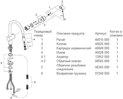 | Дополнительное оснащение | аэратор, гибкая подводка, система быстрого монтажа |