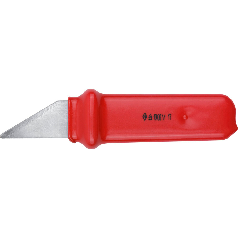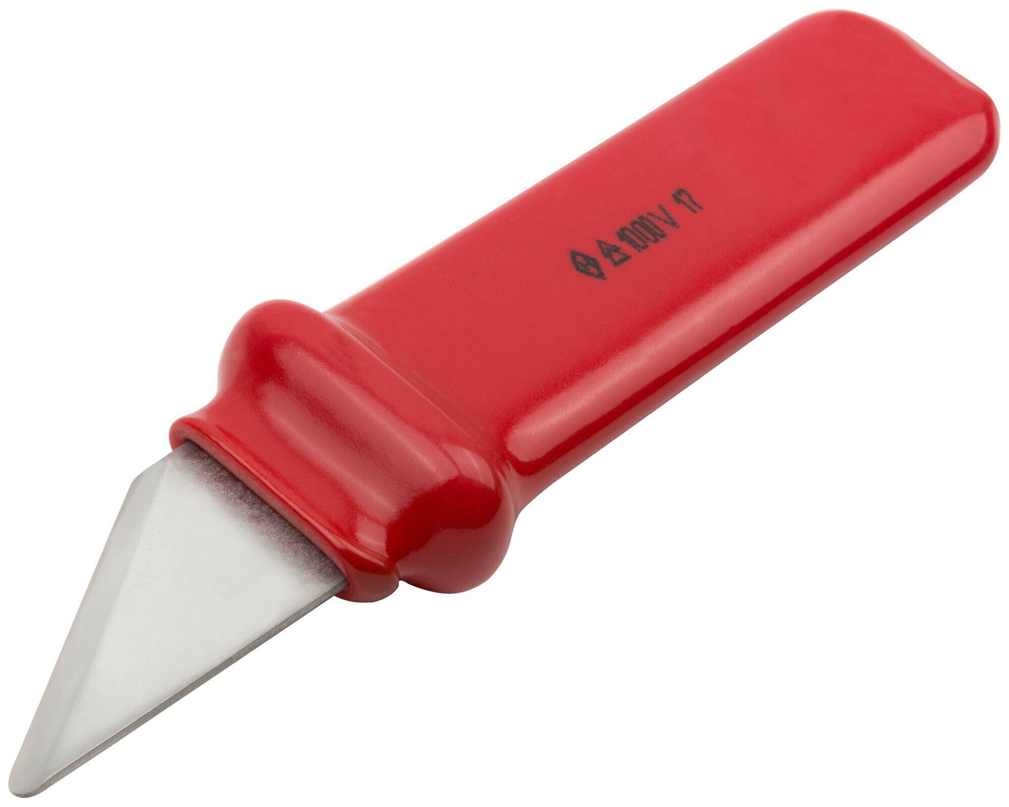 Для снятия изоляции при работе в электроустановках напряжением до 1000 В переменного тока и 1500 В постоянного тока. Материал: ударопрочная инструментальная сталь, пластиковая изолирующая ручка.