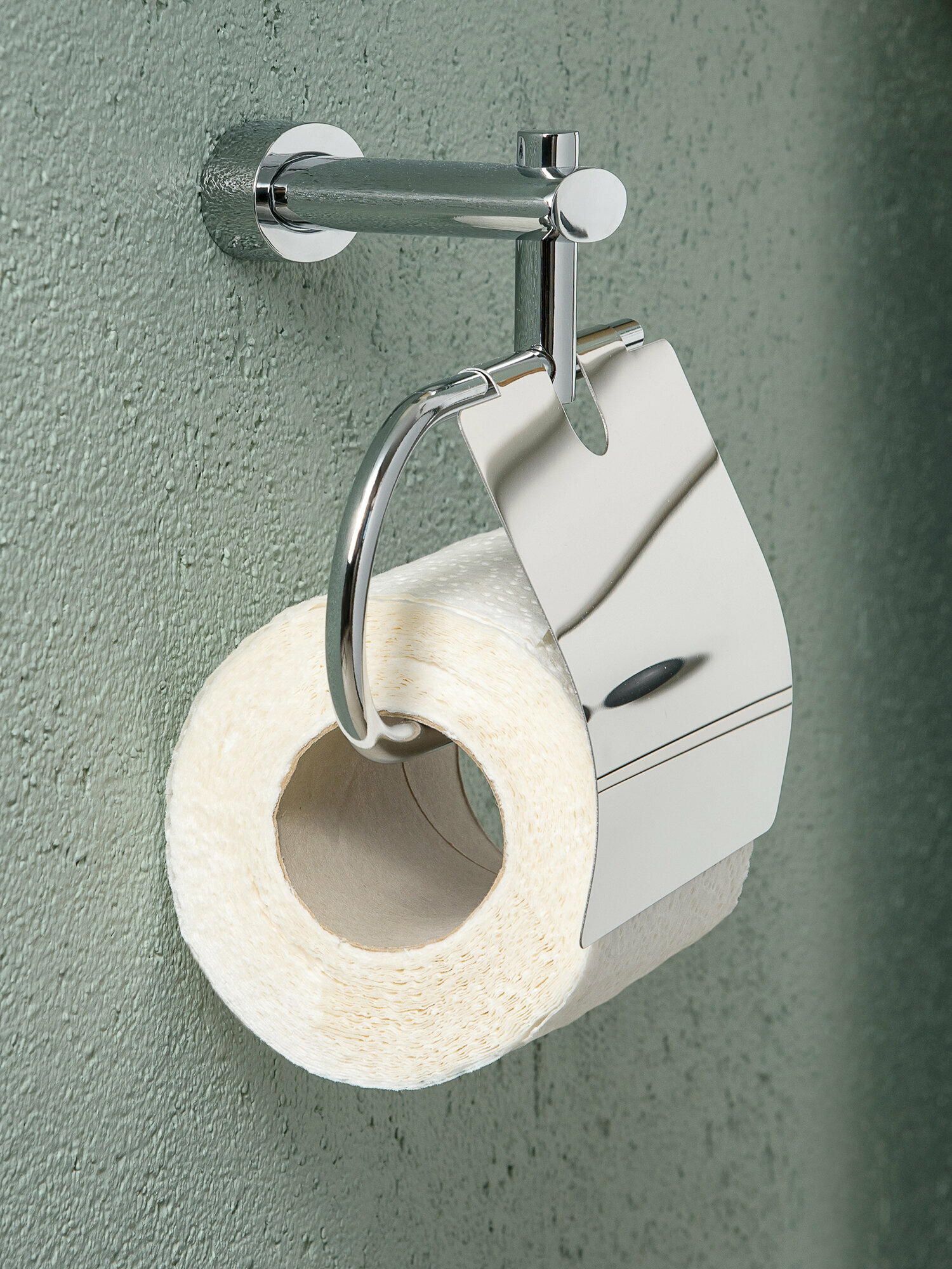 Держатель для туалетной бумаги из серии Ellips выполнен из сплава цинка. Аксессуар оснащен специальной крышкой, которая защищает бумагу от попадания влаги и пыли. Он отличается настенным видом крепления. Держатель надежно прикрепляется к стене при помощи шурупов, которые идут в комплекте. Все элементы крепления скрывает элегантная розетка.