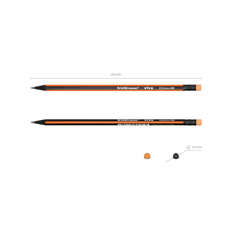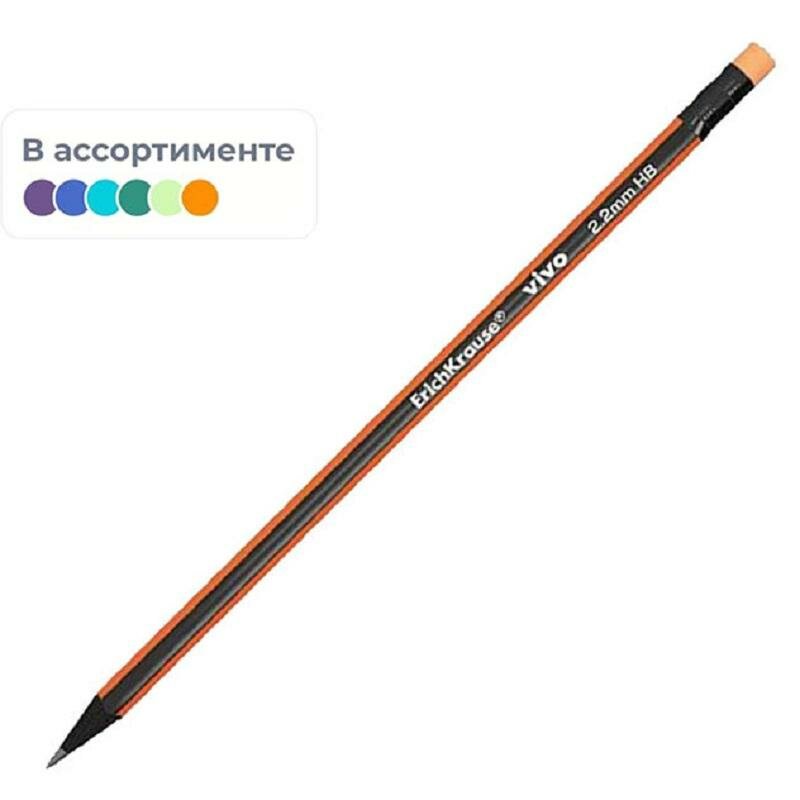 Карандаш HB Erich Krause чернографитный трехгранный с ластиком ErichKrause VIVO® (45622)