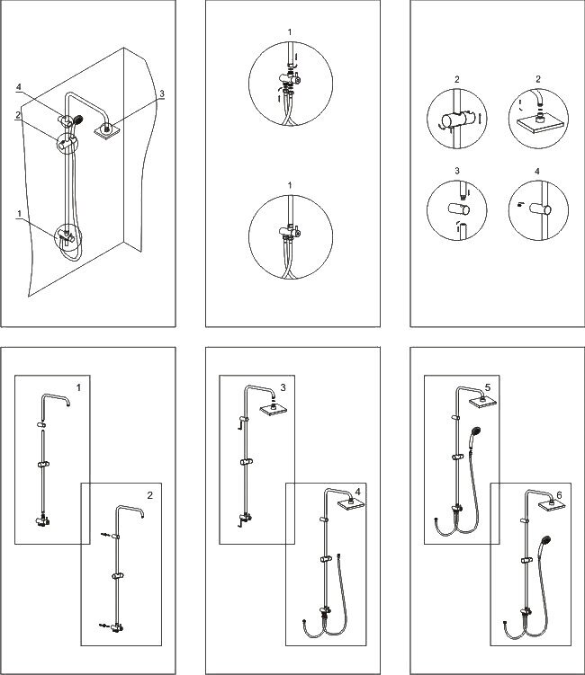 | ВКоробке | Душевая стойка - 1 шт. Верхний душ - 1 шт. Лейка - 1 шт. Держатель для душа - 1 шт. Шланг - 2 шт. Инструкция - 1 шт. |
