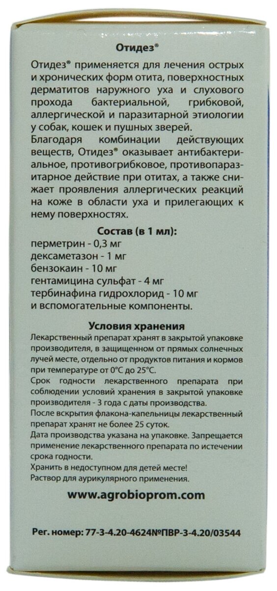 Отидез оказывает противобактериальное, противогрибковое, противовоспалительное, противоаллергическое и акарицидное действие.