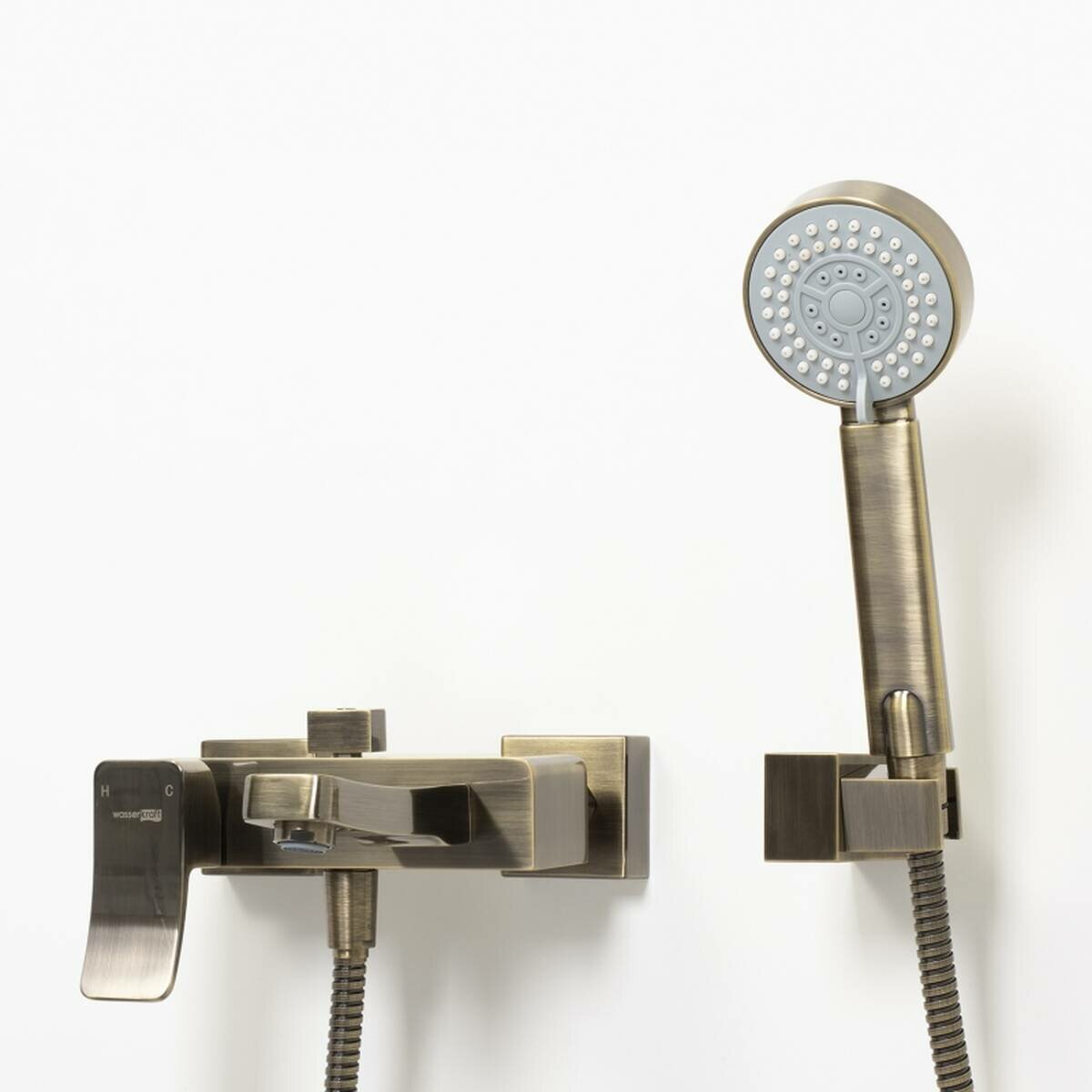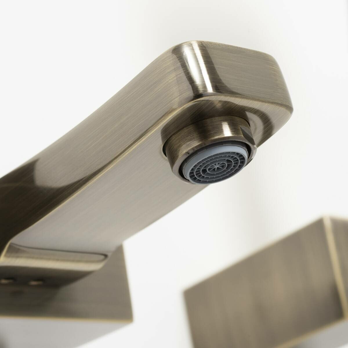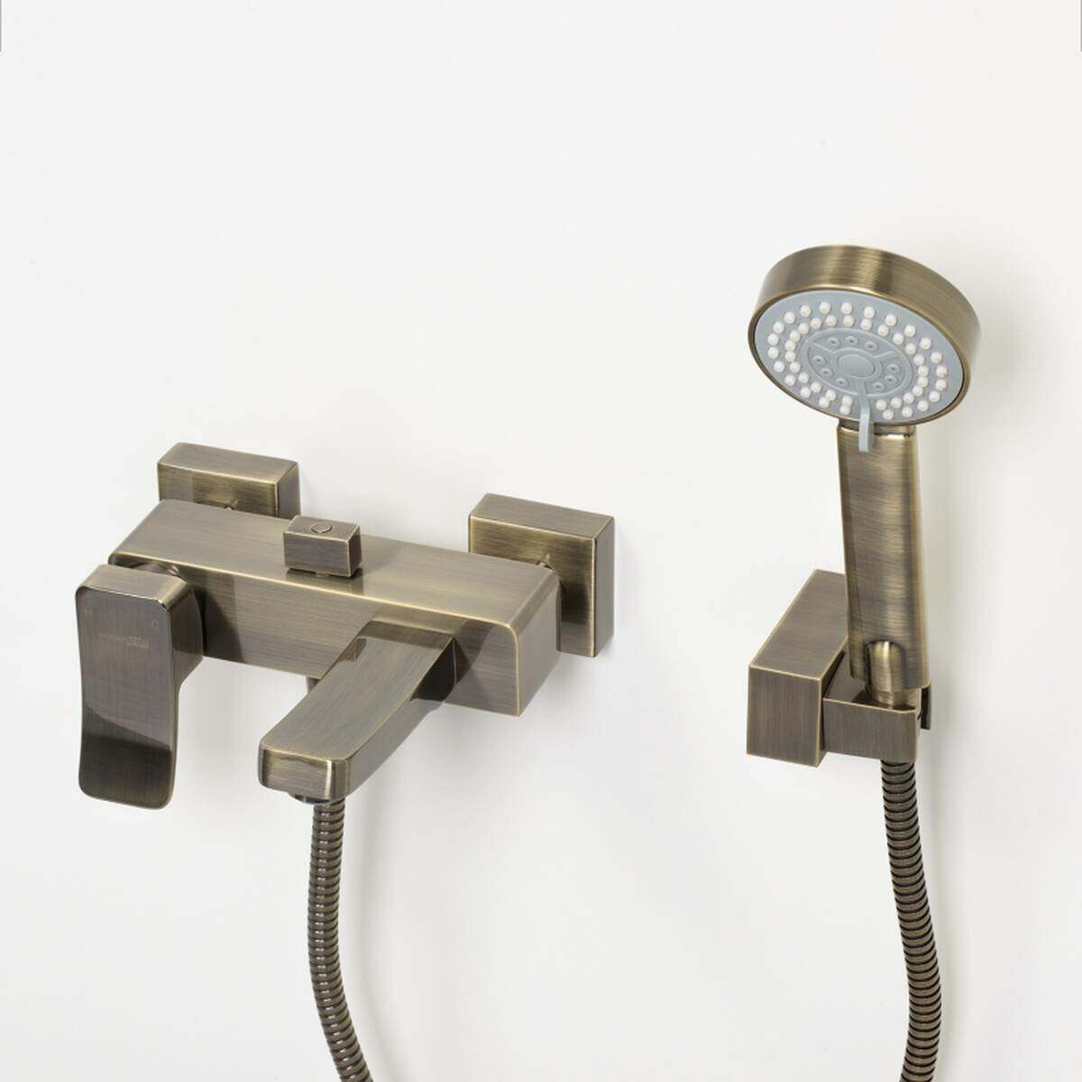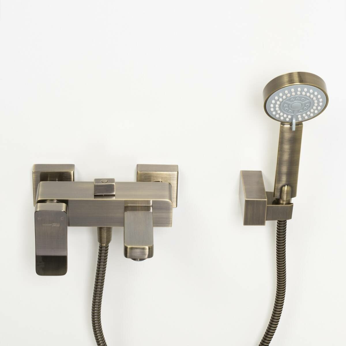 Смеситель с коротким изливом. Керамический картридж 35мм, Sedal (Испания). Встроенный силиконовый аэратор Neoperl CASCADE (Германия) для равномерного распределения струи. Керамический поворотный переключателььь. Входит в комплект: Лейка 3-функциональная с системой защиты от известковых отложений. Шланг металлический 1500 мм, подключение к лейке. Поворотное настенное крепление для душа. Цвет светлая бронза.