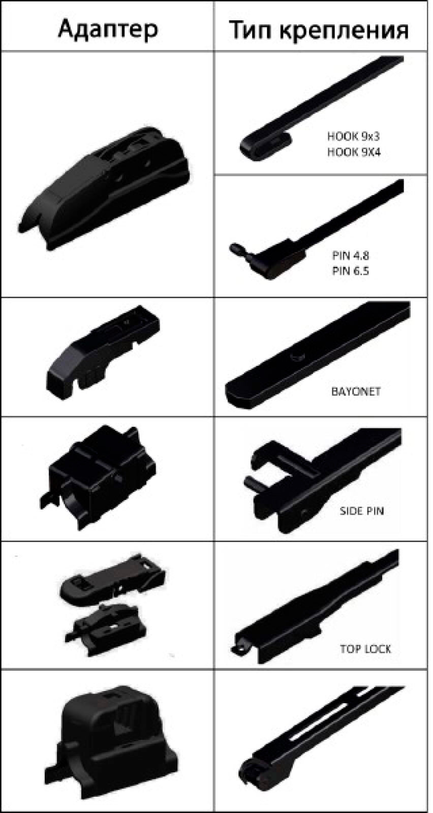 Щетка стеклоочистителя бескаркасная 38см/15" SKYWAY 1шт. 5 адаптеров - бескаркасные щетки с 5 адаптерами подходят для любого автомобиля и обеспечивают равномерное очищение всей поверхности стекла. Благодаря технологическому усовершенствованию, щетки SKYWAY способны удалять даже самые мелкие частицы воды. Натуральный каучук, из которого произведены щетки, и графитовое напыление позволяют значительно снизить уровень шума, а также увеличивают срок службы. Резина щеток остается эластичной в разных погодных условиях и под действием реагентов. Щетка плотно прилегает к стеклу даже на большой скорости, надежно защищая его от загрязнений.Особенности:Благодаря простоте установки адаптера, 90 % чистящей поверхности дворника остаётся рабочей даже на высокой скорости.Точечное давление на дворник в нескольких местах обеспечивает на 30% более плотный контакт дворника со стеклом.Уменьшение веса дворника и улучшение конструкции снизили шум при работе дворников.Аэродинамичный дизайн дворника позволяет обеспечить хороший контакт дворника со стеклом, даже при скорости 190 км/ч.Установка:Подберите необходимый Вам адаптер.Возьмите дворник пальцами с обеих сторон.Подведите дворник так, чтобы крюк упёрся в верхний край крепления.Надавите на крюк так, чтобы он провалился в крепление.Потяните дворник в сторону от крюка, пока он не защёлкнется.Закройте крышку крепления.Внимание: чтобы не препятствовать установке дворника, держите его снизу за лезвиеТип: бескаркасныйДлина: 38см/15"Количество адаптеров: 5 (Hook, Pin, Bayonet, Side Pin, Top Lock)