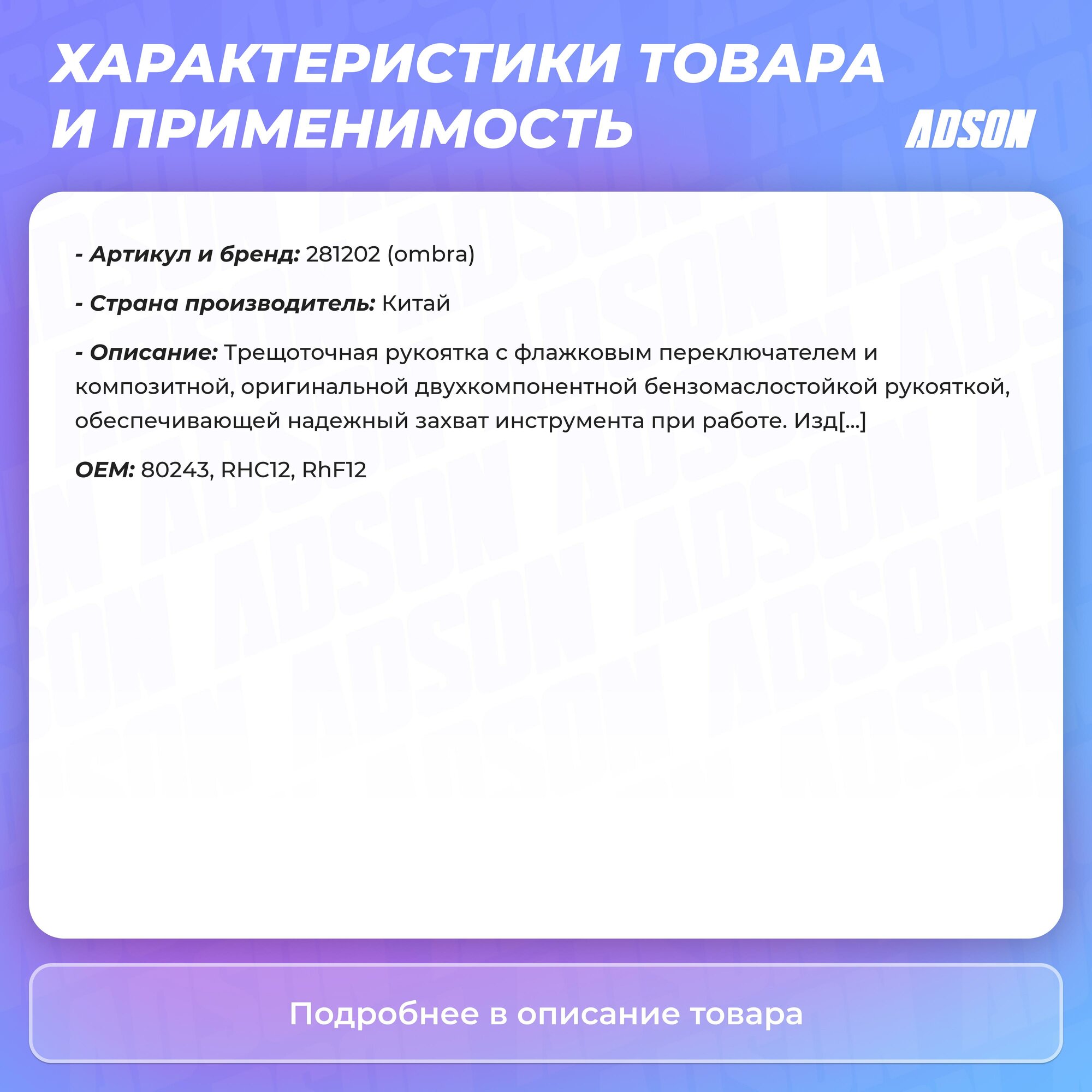 Тип товара: Трещоточная рукоятка