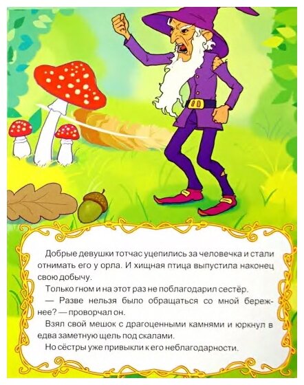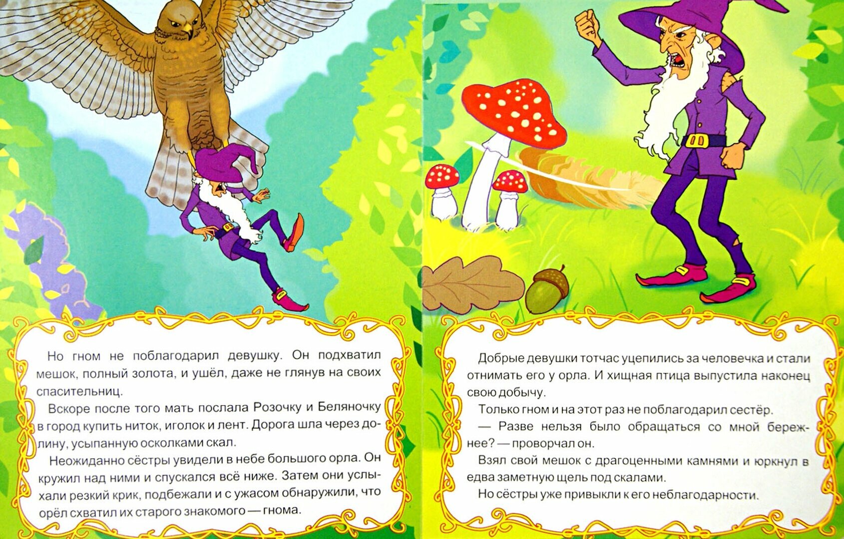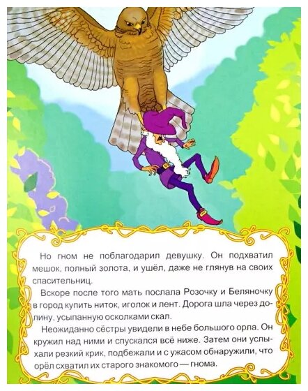 Купила данную книгу, т.к. на даче дочка (3,4 года) с племянницей (4 года) постоянно просят рассказать им сказку про двух принцесс, потому что каждая хочет быть принцессой))) Почитав отзывы немного боялась ее покупать "не хватает страниц", но получив книгу успокоилась, все хватает. Сказка сведена до легкого пересказа сюжета, не полноценный текст сказки, а сокращенный, но все основные моменты сохранены, сюжет не потерян. Картинки на каждой страничке, яркие и крупные, странички картонные, что порадовало т.к. книжка поехала на дачу. А самое главное слушательницы довольны, сказка им очень понравилась, племянница попросила купить и ей такую книжку))