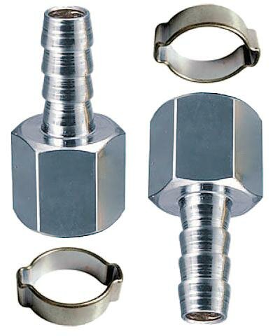 Переходник для соединения шланга 6 мм и пневмоинструмента. Крепление к инструменту - 1/4" папа. Обжимное колько 8x13 мм в комплекте, поставляется в блистере (2 шт).