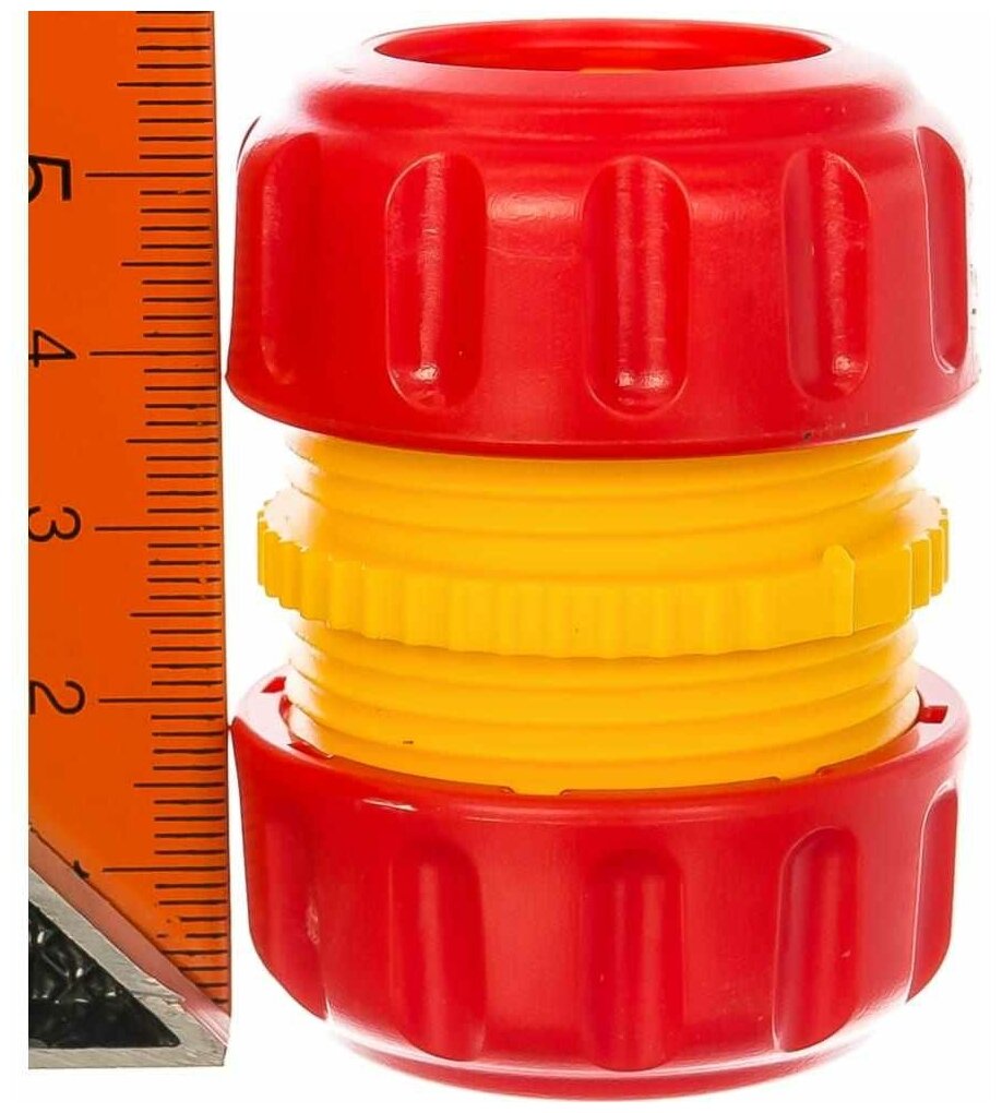 Муфта Grinda является составной частью системы полива. Предназначена для соединения двух шлангов диаметром 3/4" напрямую, тем самым позволяя увеличить дальность полива. Также может применяться для ремонта поврежденного шланга. Для этого необходимо аккуратно подрезать концы шланга и соединить их муфтой. Обеспечивает быстрое и надежное соединение, без протечек. Муфта выполнена из ударопрочного материала, имеет длительный период эксплуатации.
