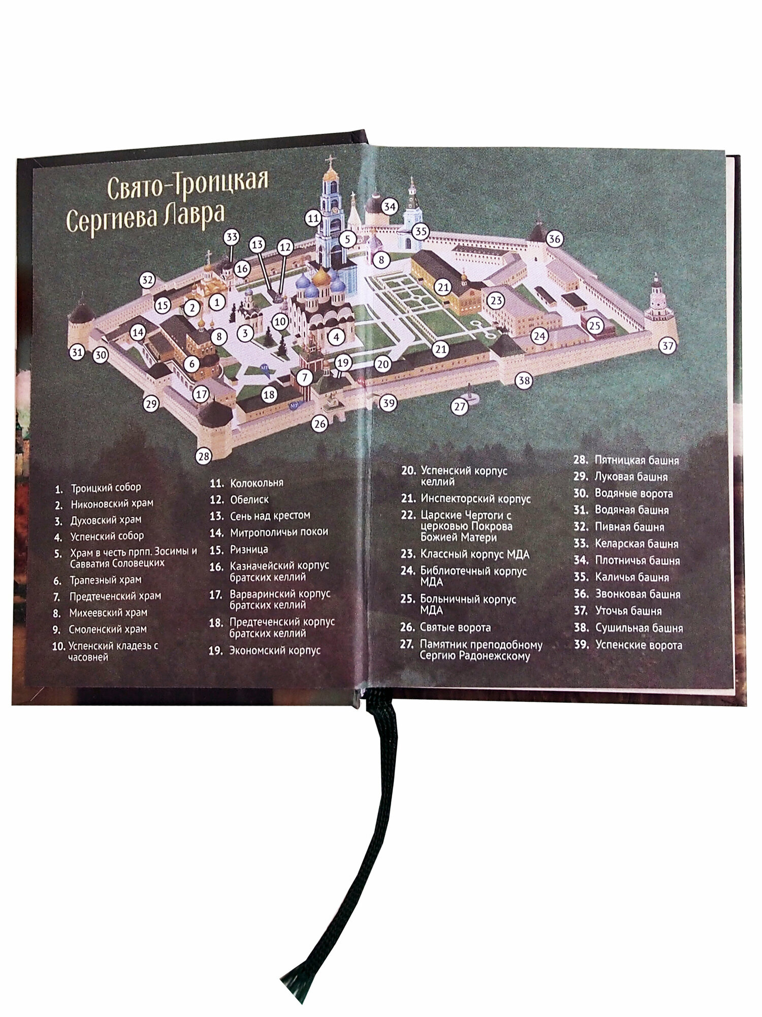 Особую часть составляют описания храмов и соборов Свято-Троицкой Сергиевой лавры с указаниями главных святынь, находящихся в них. Для паломников прилагается справочная информация.