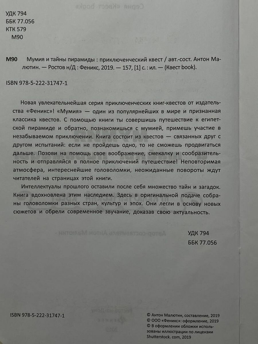 И наконец, четвертая из изданных «Фениксом» на сегодня книг из серии «Квест book» - «Мумия и тайны пирамиды. Приключенческий квест».