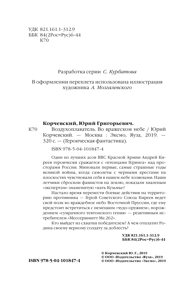 Воздухоплаватель. Во вражеском небе (Корчевский Юрий Григорьевич); ООО "Издательство "Эксмо", 2019