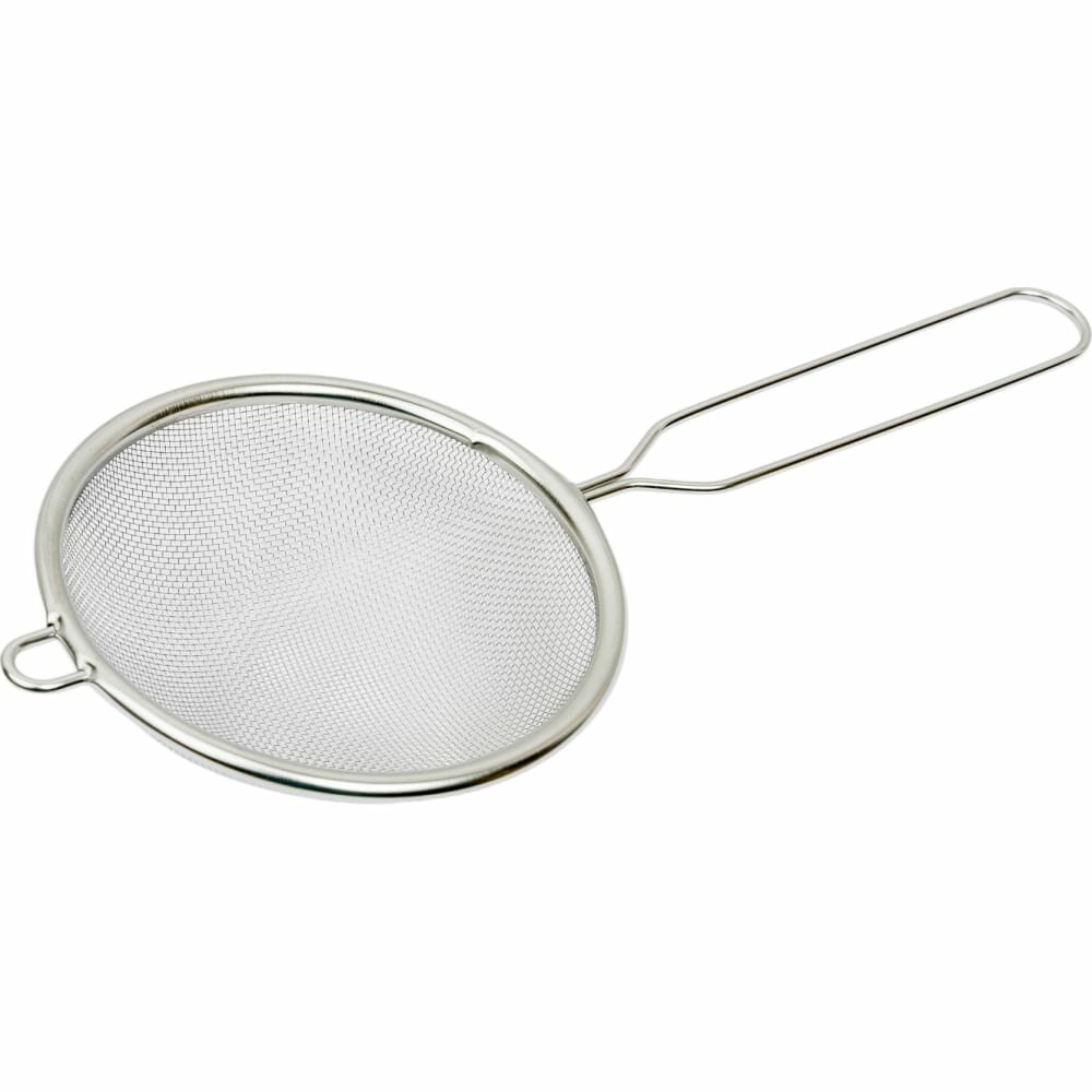 Компактное и эргономичное металлическое сито Regent Inox Pronto прекрасно подойдет для процеживания бульонов и супов, а также для очищения сыпучих продуктов. Благодаря данному материалу, изделие не подвергается коррозии, окислению и механическим повреждениям. Очень удобная ручка не позволит выскользнуть изделию из ваших рук. Качественно сделанное сито прослужит Вам много лет. Данная модель-функциональная и легкая вещь, необходимая на любой кухне. Посуда замечательно подойдет для применения дома и в ресторанах. Сито 10см-это предмет, необходимый на каждой кухне. Оно поможет просеять и разрыхлить муку, сахарную пудру и прочие сыпучие продукты. Специальные ушки и удобная ручка позволяют устанавливать сито на кастрюле и других емкостях. Изделие можно вешать на стену. Сетка из нержавеющей стали. Ручка прутковая.