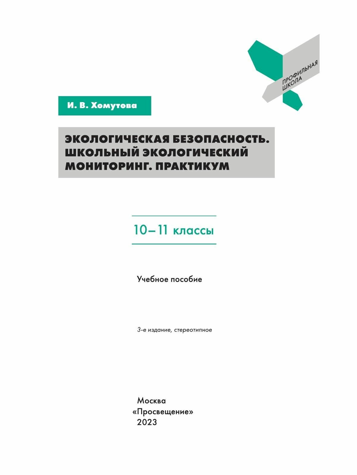 Экологическая безопасность. Школьный экологический мониторинг. 10-11 классы. Практикум (Хомутова Ирина Владимировна); Просвещение, 2023
