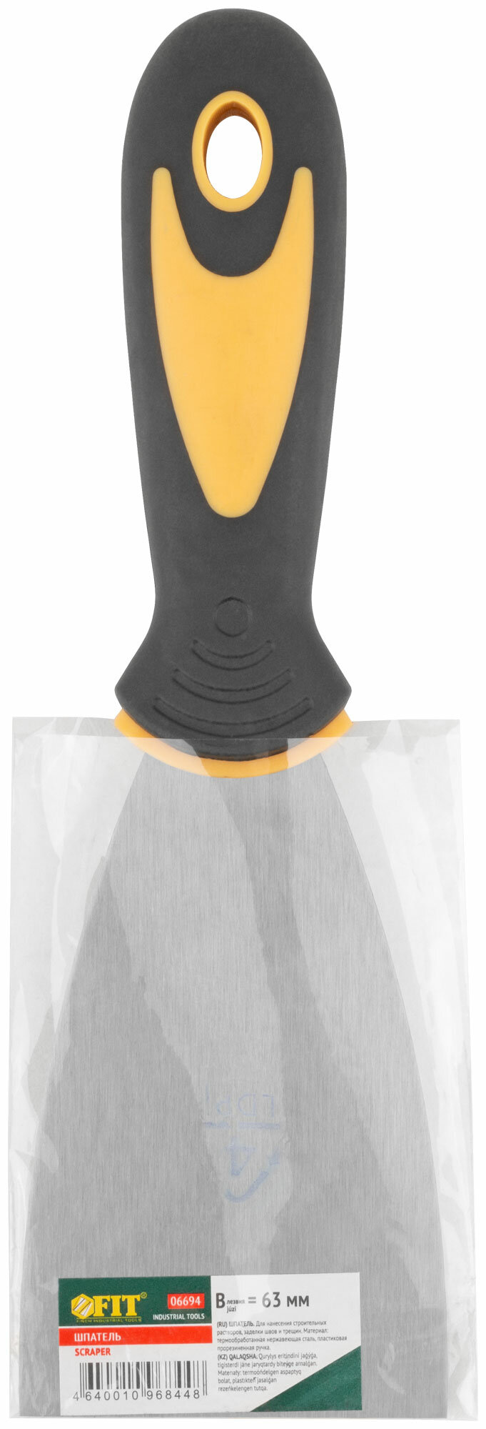 Шпатель FIT (нержавеющая сталь, прорезиненная ручка, 2.5", 63 мм)