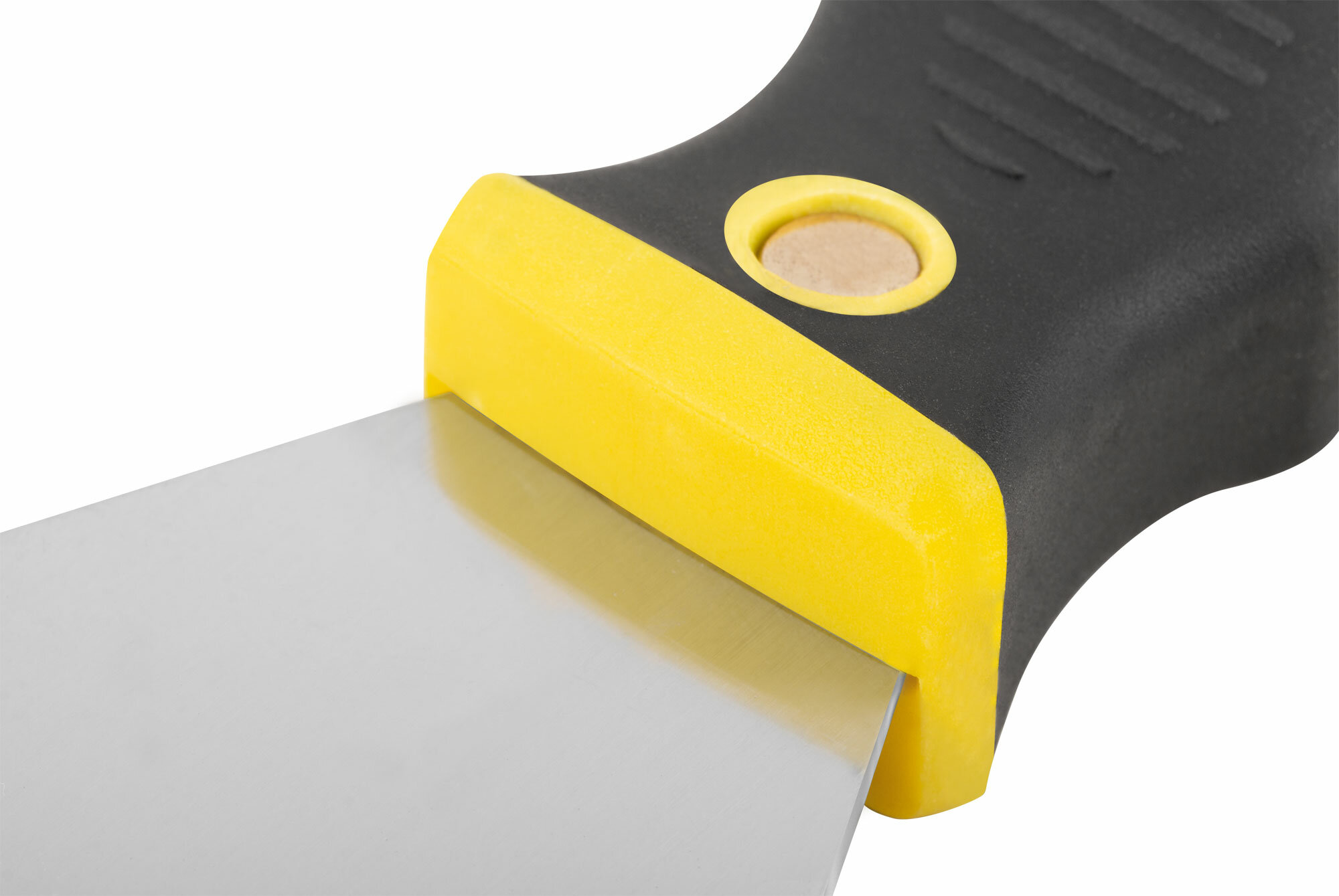 Профи. Для зачистки обрабатываемой поверхности. Твёрдое лезвие из полированной усиленной стали HRC 72-78, заточенная грань, мягкая двухкомпонентная ручка с металлическим бойком.