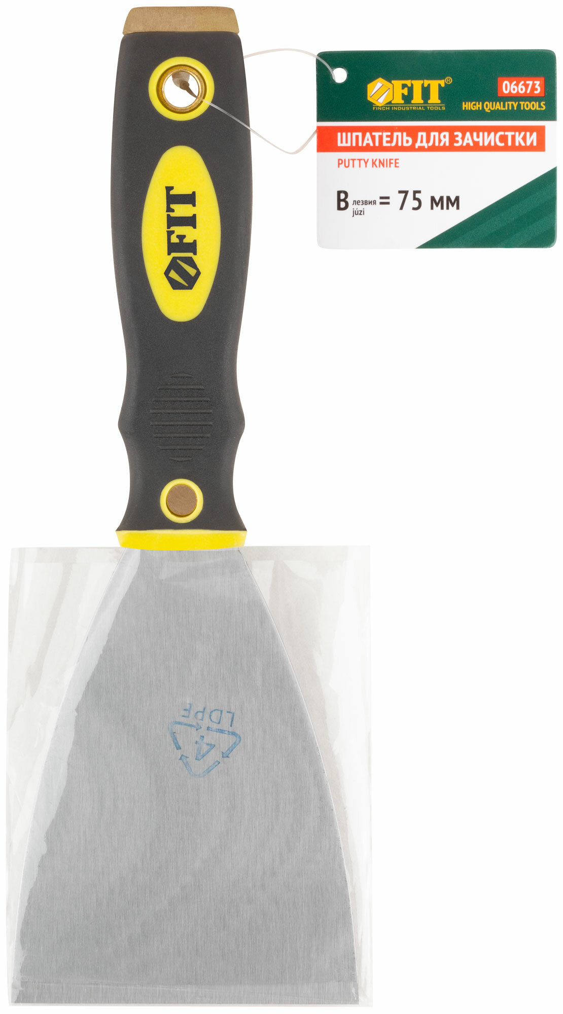 Шпатель для удаления ржавчины Профи 75мм FIT HQ оснащен заточенной гранью, которая позволяет счищать загрязнения с обрабатываемой поверхности. Оснащен полотном из прочной усиленной стали марки HRC 72-78, стойкой к механическим воздействиям. Прорезиненная рукоять не скользит в руке, обеспечивая тем самым комфортную работу при длительном применении. На конце ручки расположено отверстие для подвешивания на крючок. Металлический боек позволяет использовать инструмент для очистки прикипевших и застарелых загрязнений.