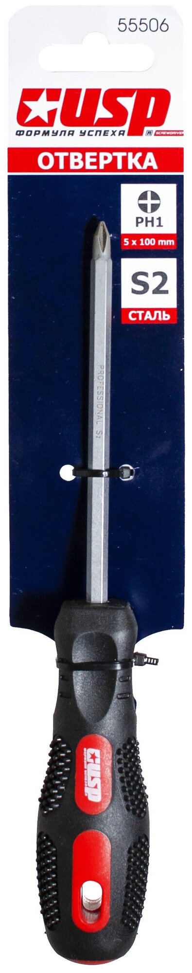 Отвертка PH1 5x100 мм FIT Гранд (сталь S2, шестригранное жало, прорезиненная ручка)