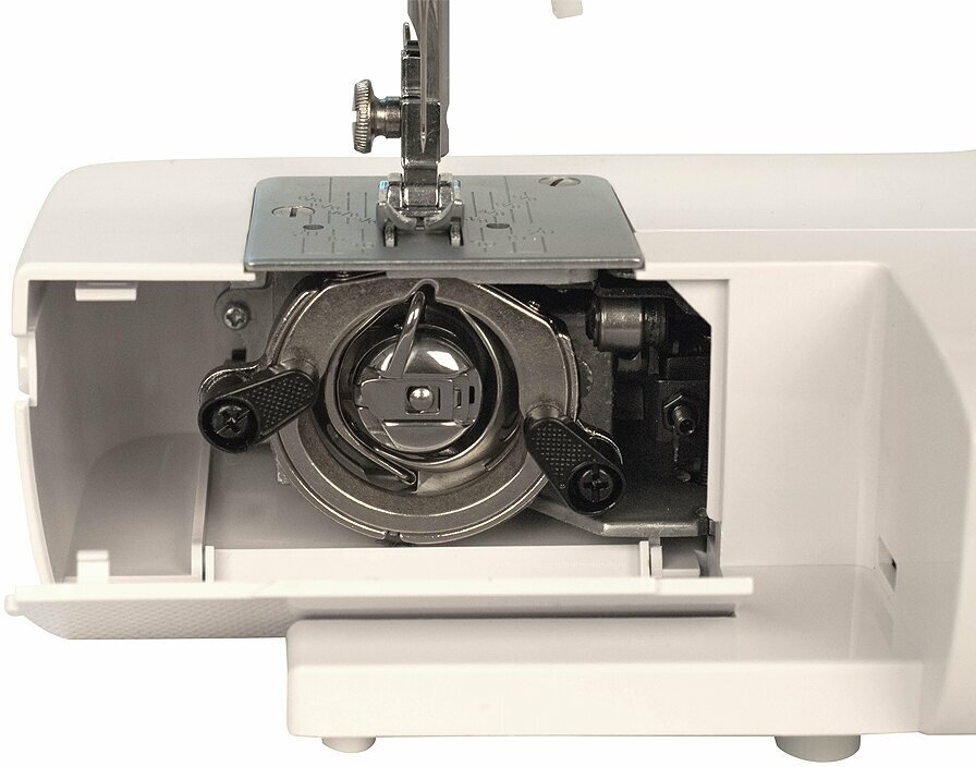 Швейная машина Chayka 110 компактная и простая в управлении. Она идеально подойдет тем, кто не шьет профессионально, но предпочитает самостоятельно подшить брюки или провести мелкий ремонт одежды. 14 доступных операций включают обычную и несколько видов декоративных строчек, а также зигзаг, который подойдет для обметки края. Chayka 110 оборудована встроенным электрическим двигателем, педаль поставляется в комплекте. Функция реверса активируется нажатием на рычаг и используется для закрепления нити. Челнок имеет привычную старшему поколению вертикальную конструкцию.
