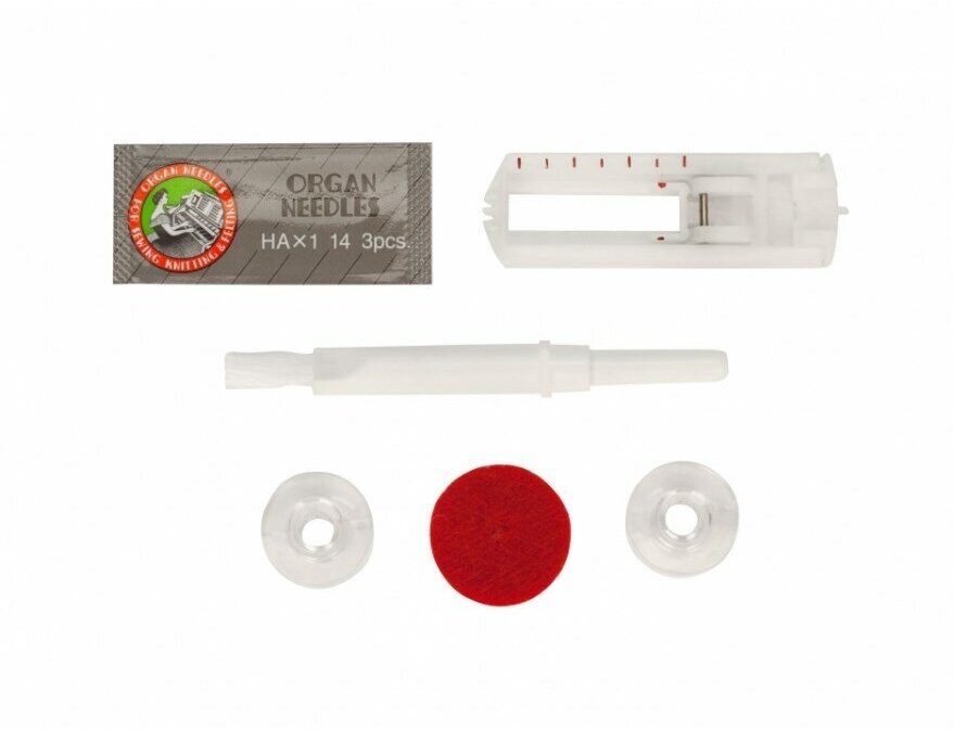 | Особенности | комплектация:шпульки, войлочная прокладка, рамка для петли, распарыватель, иглы |