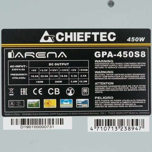 Сервис сравнения цен СкидкаГИД предлагает сравнить цены на товар «Блок питания Chieftec GPA-450S8 450W серый»