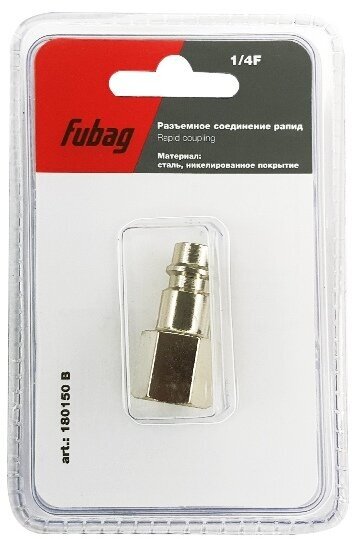 Переходник FUBAG применяется для соединения различных частей пневмосистем. С одной стороны, фитинг имеет внутреннюю резьбу — 1/4", с другой быстросъемное соединение — "рапид" "папа". Созданная конструкция обладает высокой надежностью и герметичностью. Поставляется в фирменной упаковке - "блистере"!