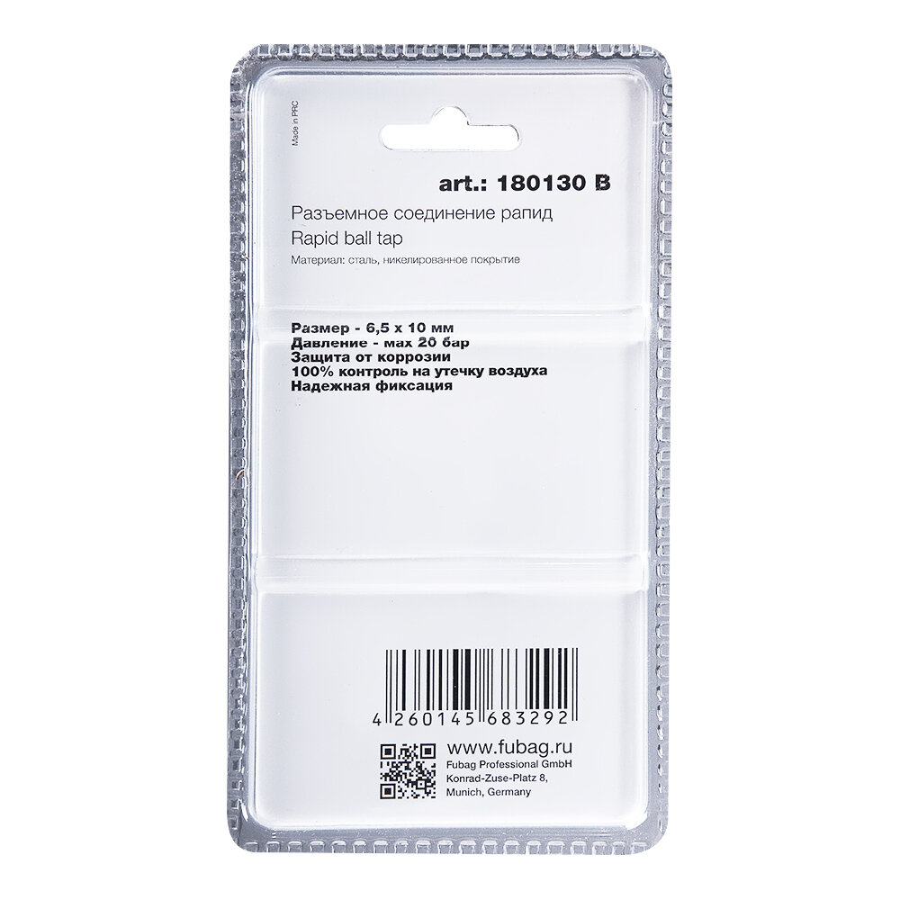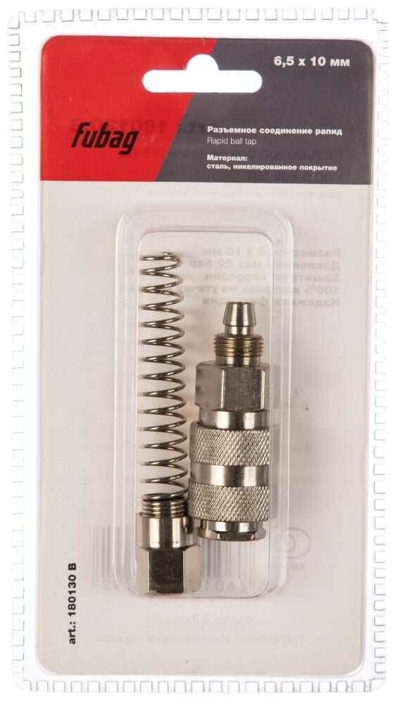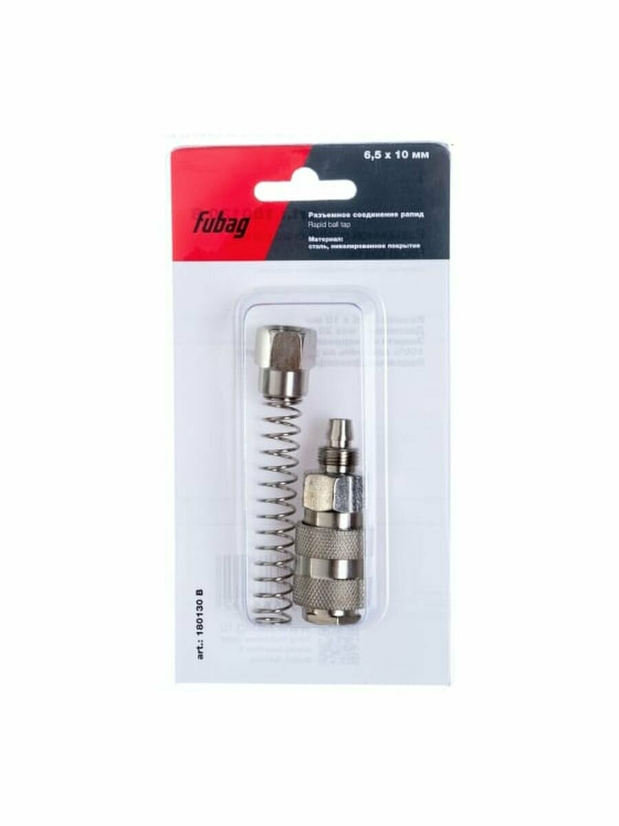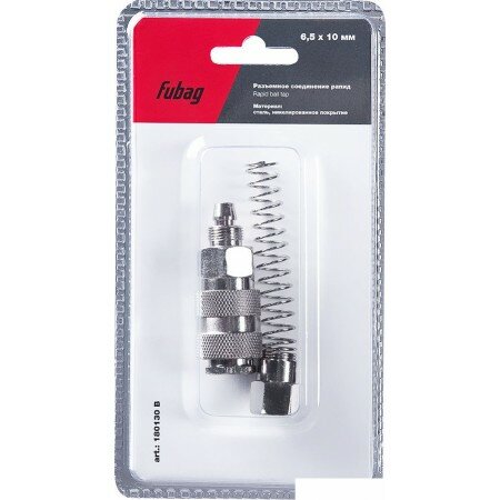 | Доп. наименование Водопад | Соединитель Fubag 180130 B разъемное соединение рапид муфта пружинка для шланга 6.5x10мм блистер |