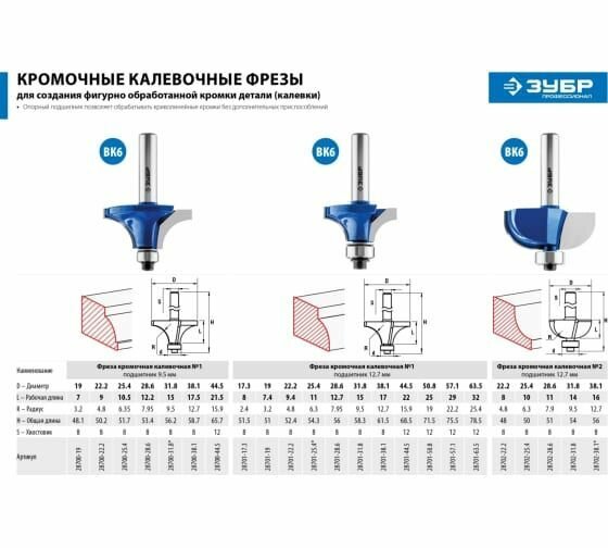 Фреза кромочная калевочная ЗУБР — это высококачественный инструмент, предназначенный для скругления кромок при обработке столешниц, полок, шкафов и других работ с различными видами древесины.Преимущества Высокое качество: фреза изготовлена из прочного материала, что обеспечивает её долговечность и стабильность работы Точная обработка: благодаря точной заточке режущих кромок, фреза обеспечивает ровный и чистый рез Универсальность: фреза подходит для различных видов работ, включая скругление кромок, обработку столешниц, полок и шкафов Безопасность: фреза оснащена упорным подшипником, который позволяет обрабатывать криволинейные кромки без дополнительных приспособлений