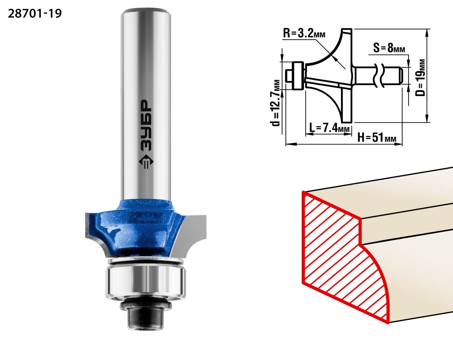 Кромочная калевочная фреза ЗУБР 28701-19