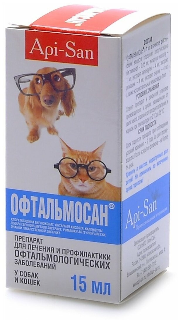 Глазные капли для кошек и собак Api-San Офтальмосан 15мл (размер: 0.037)