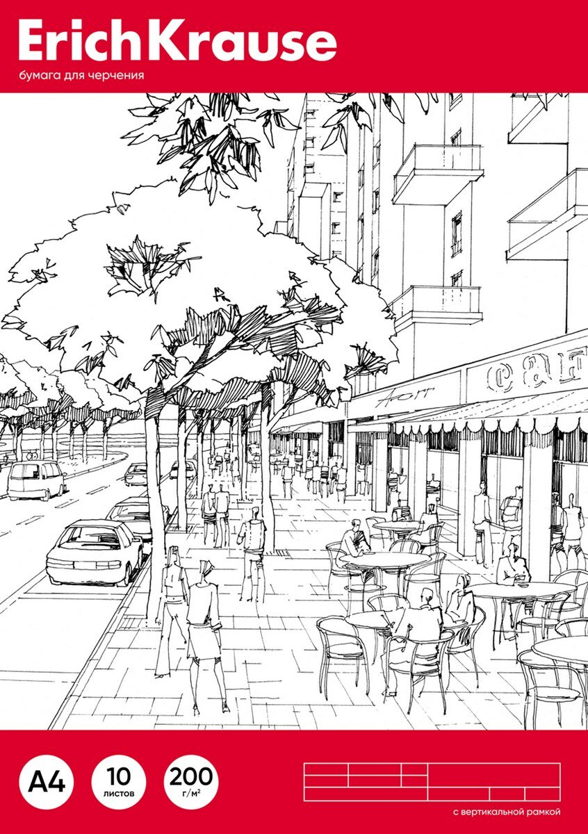 Бумага для черчения формата А4 (210х297 мм). Ориентация страниц - вертикальная. Имеет рамку и малый штамп. В папке 10 листов. Бумага чертежная плотностью 180 г/м2. Папка из плотного картона удобна для хранения и переноски чертежей. Бумага для черчения упакована в термоусадочную пленку по 5 штук.