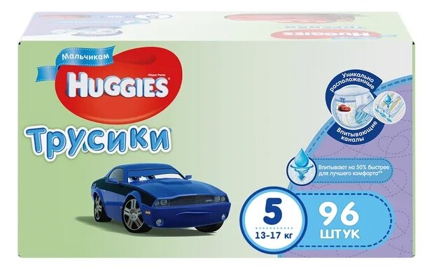 Huggies Трусики для мальчиков Трусики-подгузники Huggies для мальчиков стали еще лучше благодаря новому пояску - мягкому, как облачко. Дополнительный сверхмягкий слой обеспечивает комфортную и эластичную посадку с меньшим давлением, снижая риск появления красных следов на коже ребенка. В течение дня поясок подгузников адаптируется к меняющимся размерам животика, нежно обнимая его. Трусики Huggies созданы для малышей, которые активно двигаются - много ползают, делают свои первые шаги или уже уверенно топают по дому маленькими ножками. Специальный впитывающий слой DryTouch расположен с учетом анатомических особенностей мальчиков, впитывая влагу за секунды и сохраняя кожу сухой днем и ночью. Обновленные трусики Huggies с мягким, как облачко, пояском - нежная забота и надежная защита для максимального комфорта активных мальчиков. Окутайте малыша мягкостью облака! Преимущества: . Поясок-облачко - дополнительный сверхмягкий слой еще нежнее обнимает животик малыша . Идеальная посадка и комфорт для активных детей благодаря эластичному 2-зонному цельному пояску . Слой DryTouch, расположенный с учетом анатомических особенностей мальчиков, сохраняет кожу сухой днем и ночью . Мягкие эластичные резиночки вокруг ножек обеспечивают дополнительную защиту от протекания . Легко надеть - просто натяните трусики, легко снять - разорвите боковой шов . Индикатор влаги подскажет, когда придет время сменить трусики . Новый дизайн с любимыми героями Disney Дополнительно рекомендуем приобрести: Влажные салфетки Huggies
