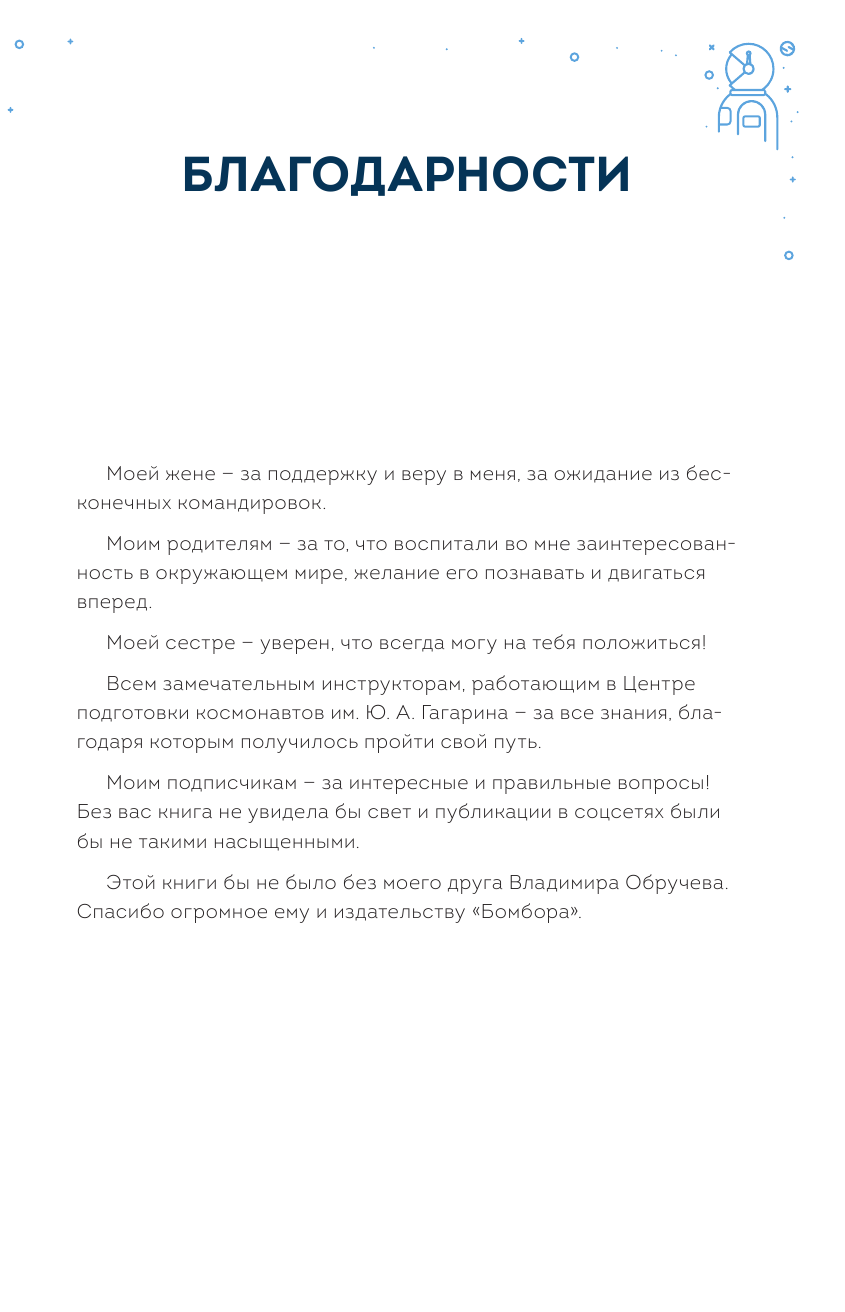 «Общение в соцсетях — непростое дело, которое пришлось освоить космонавту помимо науки и техники. На протяжении его космических полетов из Интернета сыпались вопросы. На них приходилось отвечать прямо с орбиты, а теперь удалось собрать их под одной обложкой». — Виталий Егоров, блогер Zelenyikot, популяризатор космонавтики