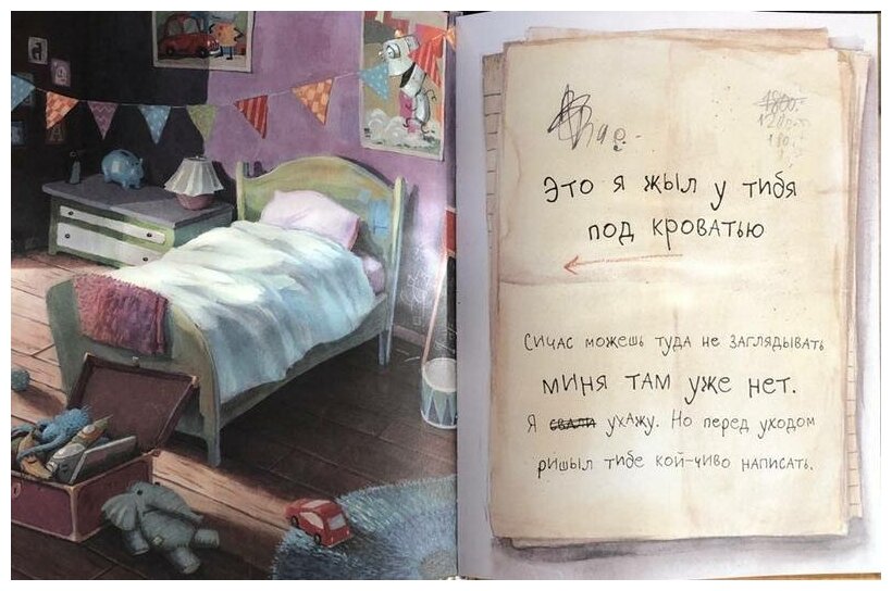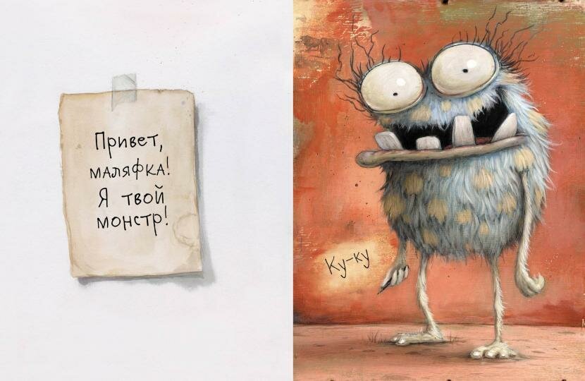 Признаюсь честно, книгу покупала для себя:) не смогла пройти мимо иллюстраций и необычной манеры изложения. Коротенькая очень смешная история в виде письма, написанного Монстром по имени Страшун мальчику, у которого он жил под кроватью и пытался его пугать. И как из этого ничего не вышло. Переводчик постарался на славу, смех и хорошее настроение вам обеспечены. Опасения показывать книгу ребенку не оправдались, после прочтения требует продолжения истории, да и я бы тоже не отказалась:)
