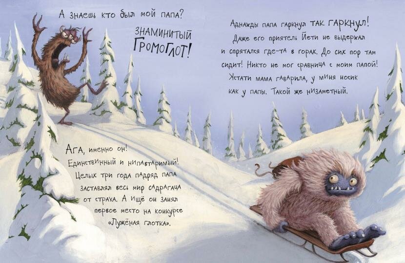 Иллюстрации черно-белые и цветные, страшно-смешной персонаж.