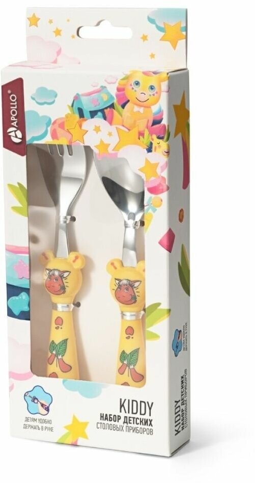 Набор детских столовых приборов нержавеющая сталь 2 шт Kiddy вилка ложка Apollo KDY-01