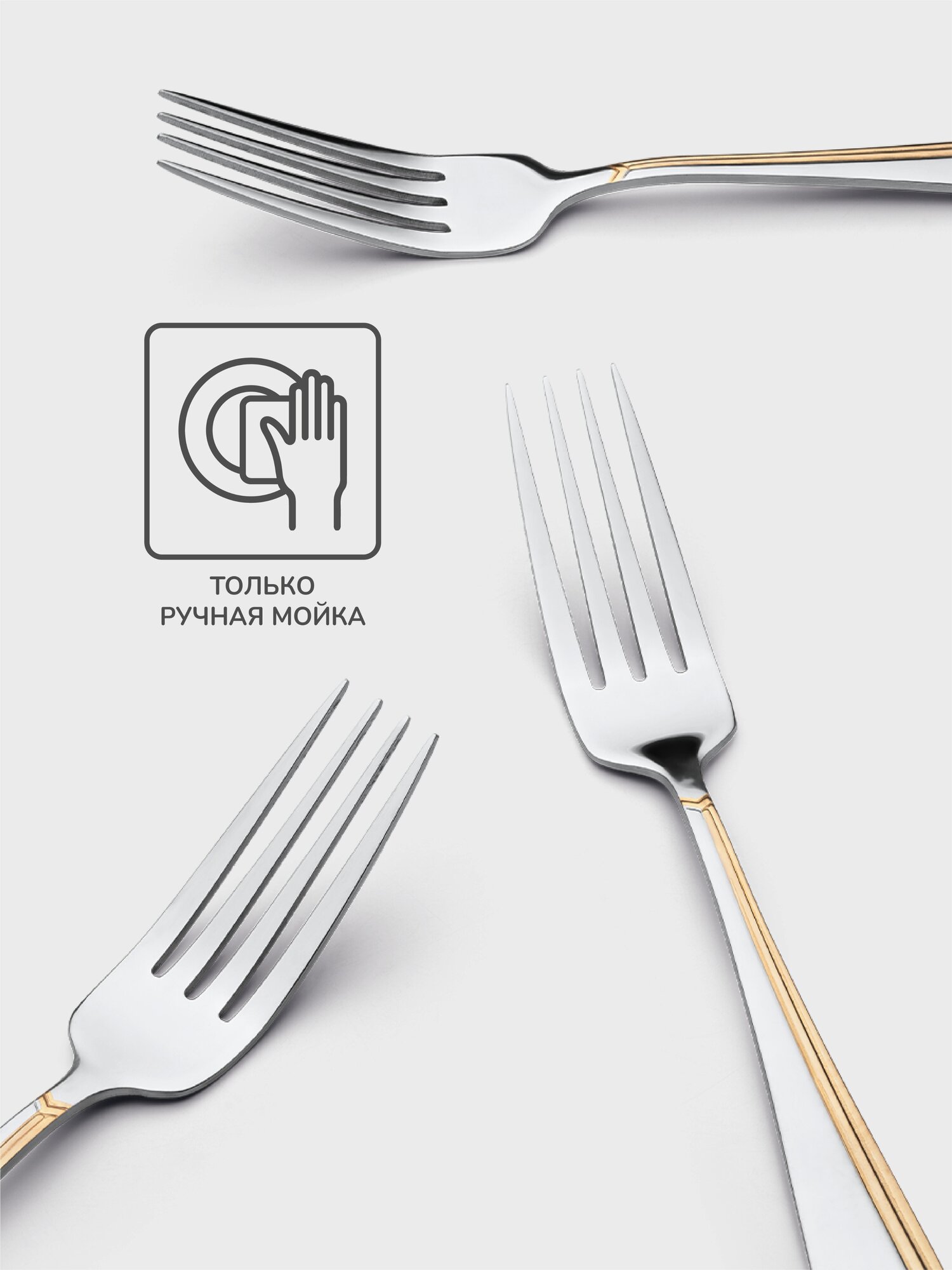 Вилки столовые станут незаменимым помощником при сервировке обеденного стола. Сервировочный инвентарь выполнен из качественного материала, поэтому вилки прослужат на вашей кухне много лет. Выполненные в цвете серебро, вилки будут украшать пространство. С длинными, изысканными приборами трапеза обретает особенное настроение. Набор столовых приборов обеспечит подачу еды как в лучшем ресторане. Вместо использования одноразовых пластиковых вилок предлагаем вам крутой комплект из нержавеющей стали. Матовое покрытие уступает глянцевому и напоминает мельхиор. Полировка изделий стоит на первом месте! Сделайте приятный подарок маме, бабушке, сестре или подруге. Для того чтобы обеспечить ресторанную подачу у вас дома, предлагаем ознакомиться с другими моно-наборами серии. Сервировка обеденного стола для праздника или повседневного приема пищи делает набор вилок универсальными. Всё продумано до мелочей! Вилка подойдет и для поедания десертов. Высокий уровень прочности изделий позволяет использовать их для всех видов блюд: для роллов, шашлыка, рыбы, фруктов, сыра и других. Покупайте вилки и берите их собой на дачу или пикник. Набор вилок подойдет для большей части посуды так как не царапает поверхность тарелки и другой кухонный инвентарь.