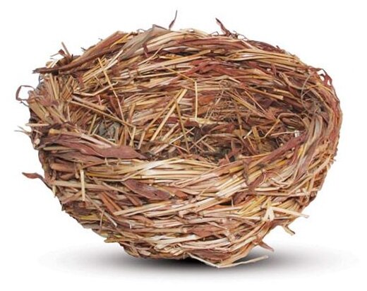 Стебли и листья луговых трав. Гнездо плетеное с ветками открытое для птиц подвешивается внутри клетки.