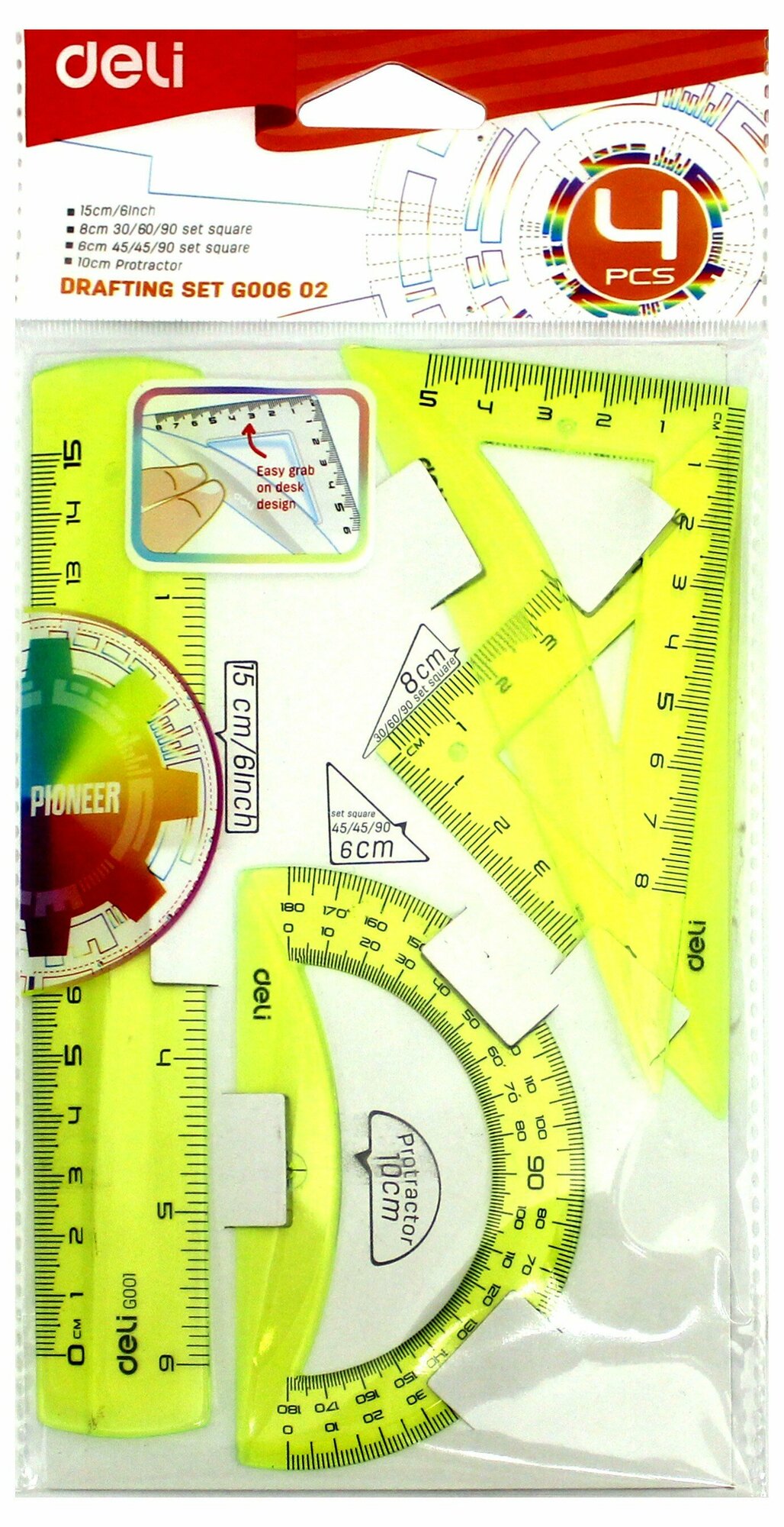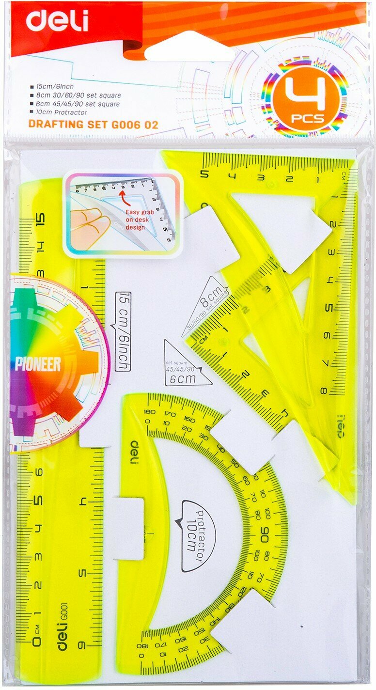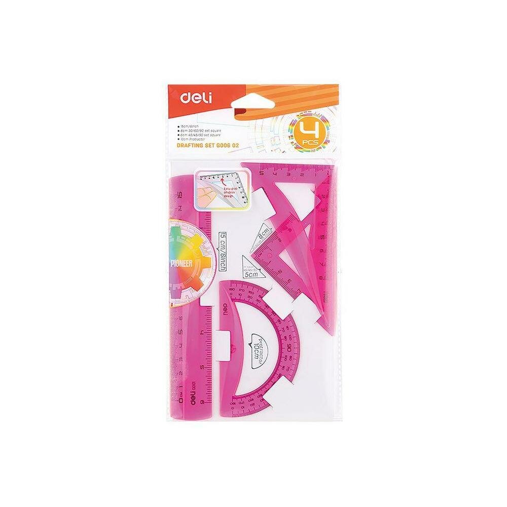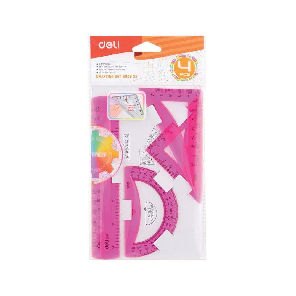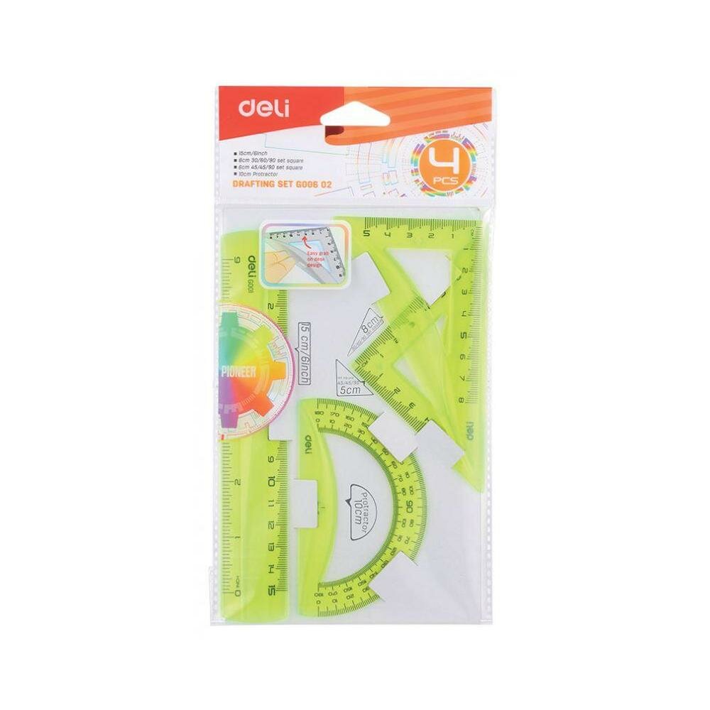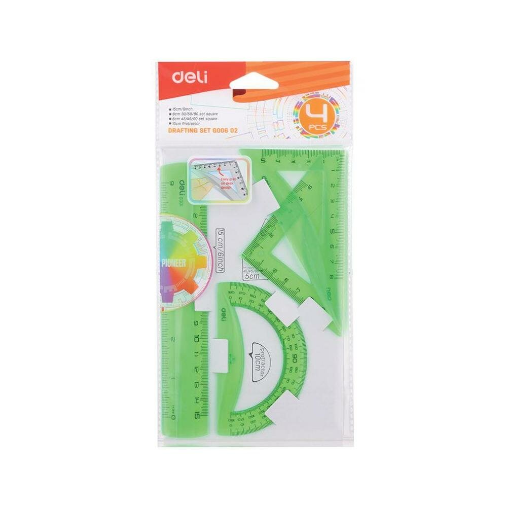 Набор для черчения Deli корпус ассорти в компл.:линейка 15см/прямоуг.2шт 30 шт./кор. EG00602
