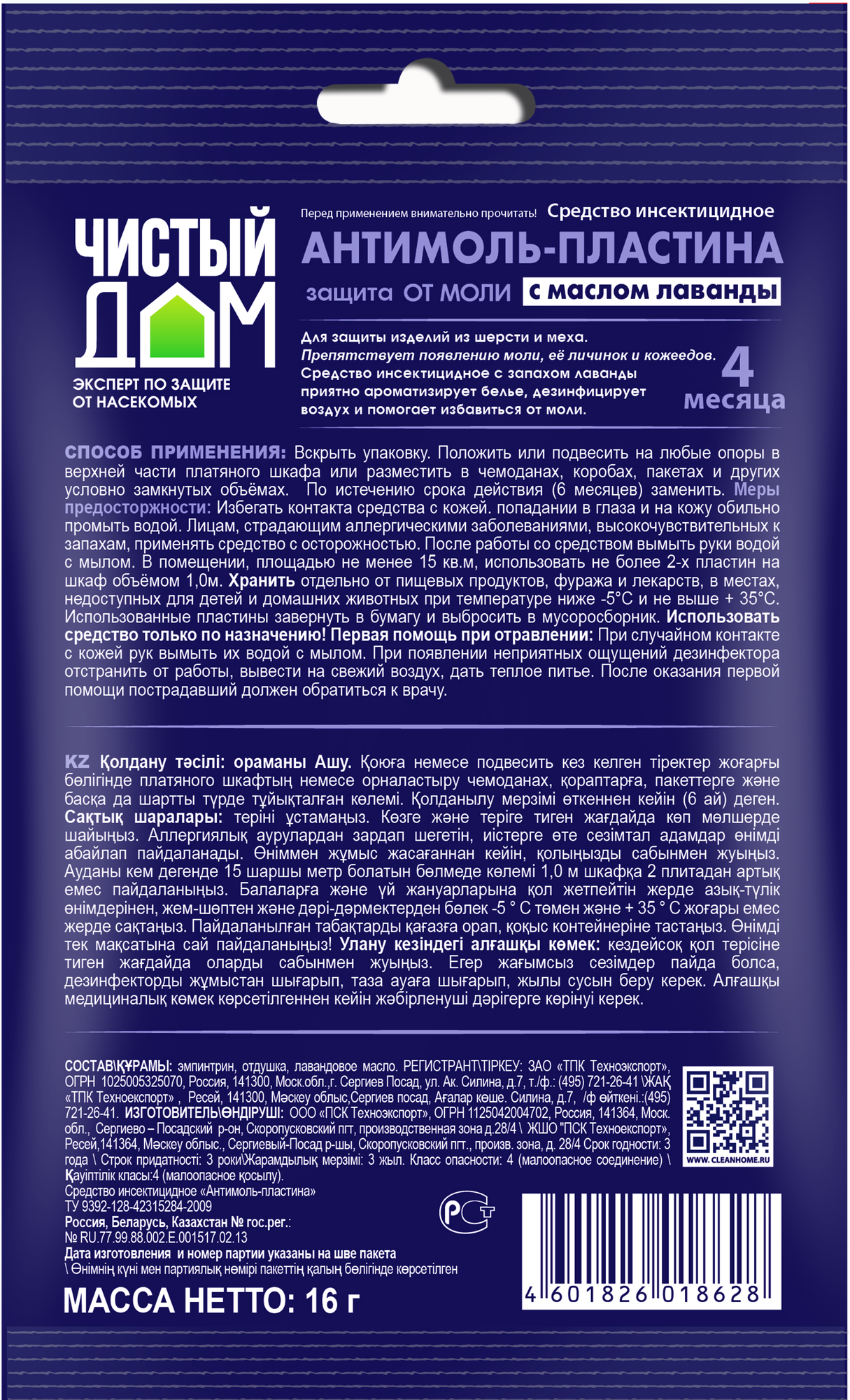 Модель: Пластина от моли Чистый Дом в саше 1 шт