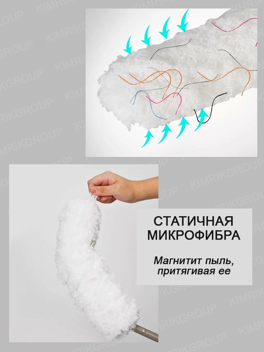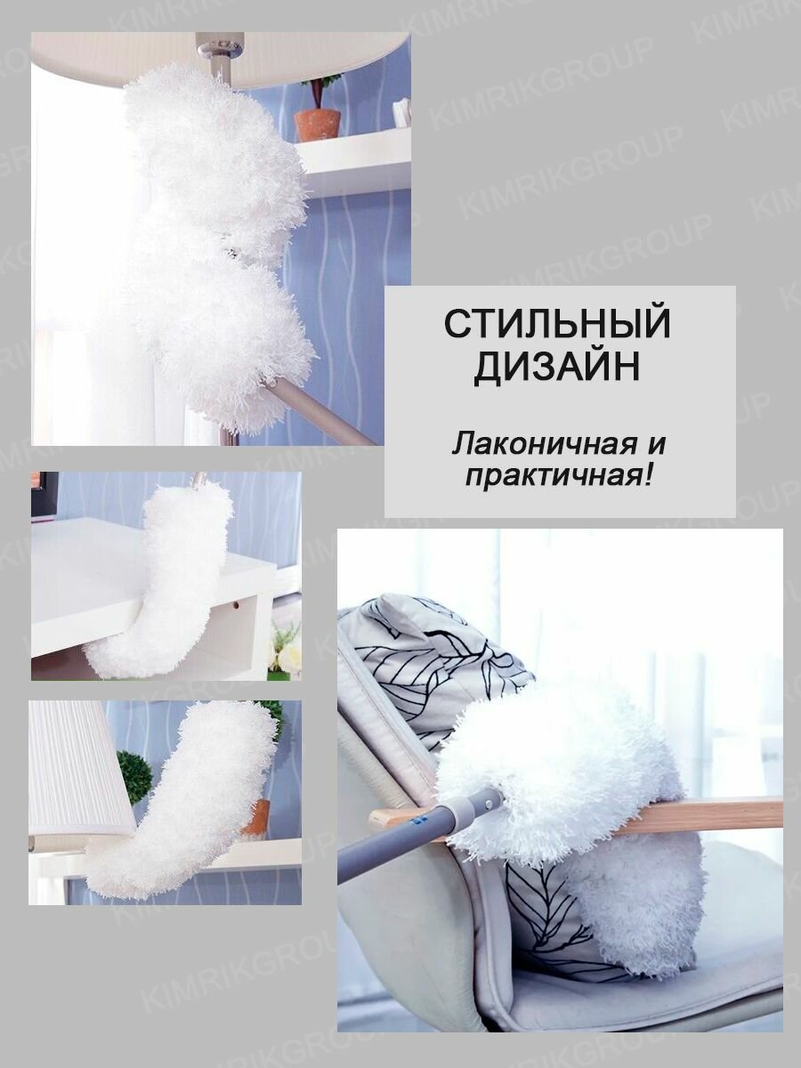 Не оставляет мелких частиц на мебели как при использовании обычной тряпки. Гибкое основание для труднодоступных мест. Лучшее решение для уборки дома от пыли. Простота в уходе и легкость в хранении. Описание товара: Этот инструмент поможет очистить пыль, а за счет гибкого основания проникнет во все трудно доступные места. Телескопическая ручка поможет выбрать оптимальную длину и очистить пыль на кондиционере, занавески, машины, окна, мебели. При загрязнении ее нужно помыть потом встряхнуть и снова пользоваться.