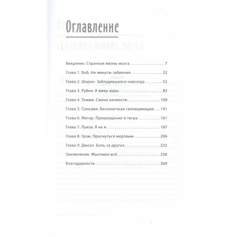 Ученица великого Оливера Сакса, Хелен Томсон описывает девять невероятных примеров нарушений мозга, которые делают жизнь их обладателей фантастической и полной необыкновенных событий. Эта завораживающая и правдивая книга перевернет представление о человеческом мозге.