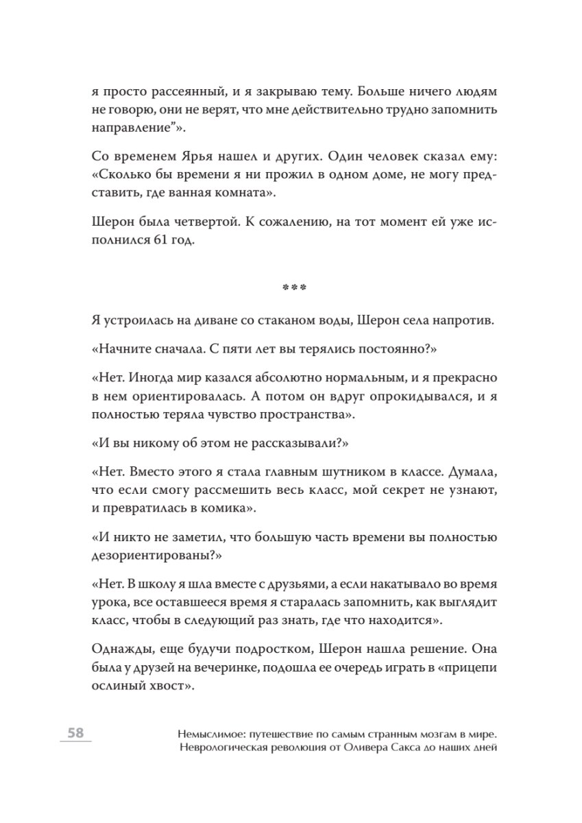 Книга написана для любителей интеллектуального чтения. В ней показана неврологическая революция и те изменения, которые произошли со времен Оливера Сакса, идеи и дух которого пронизывает это произведение.