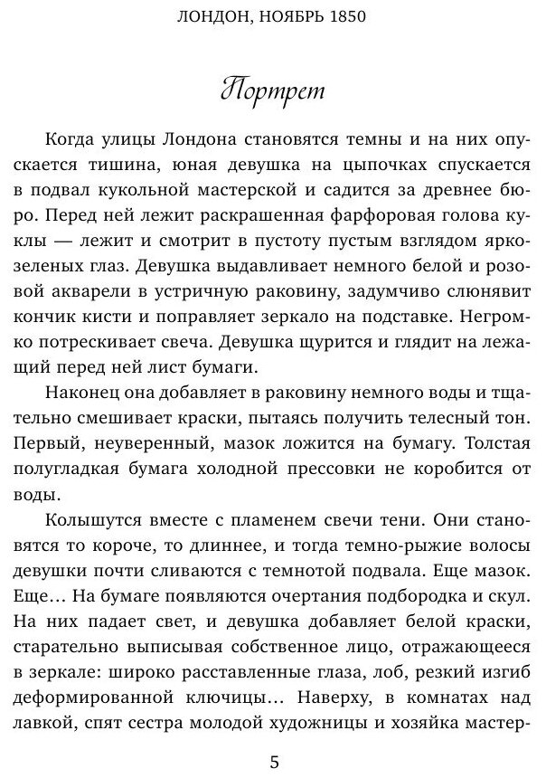 Необыкновенная обстановка похожа на "Парфюмера" Патрика Зюскинда - это неописуемо! Окунуться в атмосферу викторианской Англии, посетить Хрустальный дворец, Великую выставку, познакомиться с замечательными художниками и их картинами, которые реально существовали - всё это возможно, читая эту книгу!