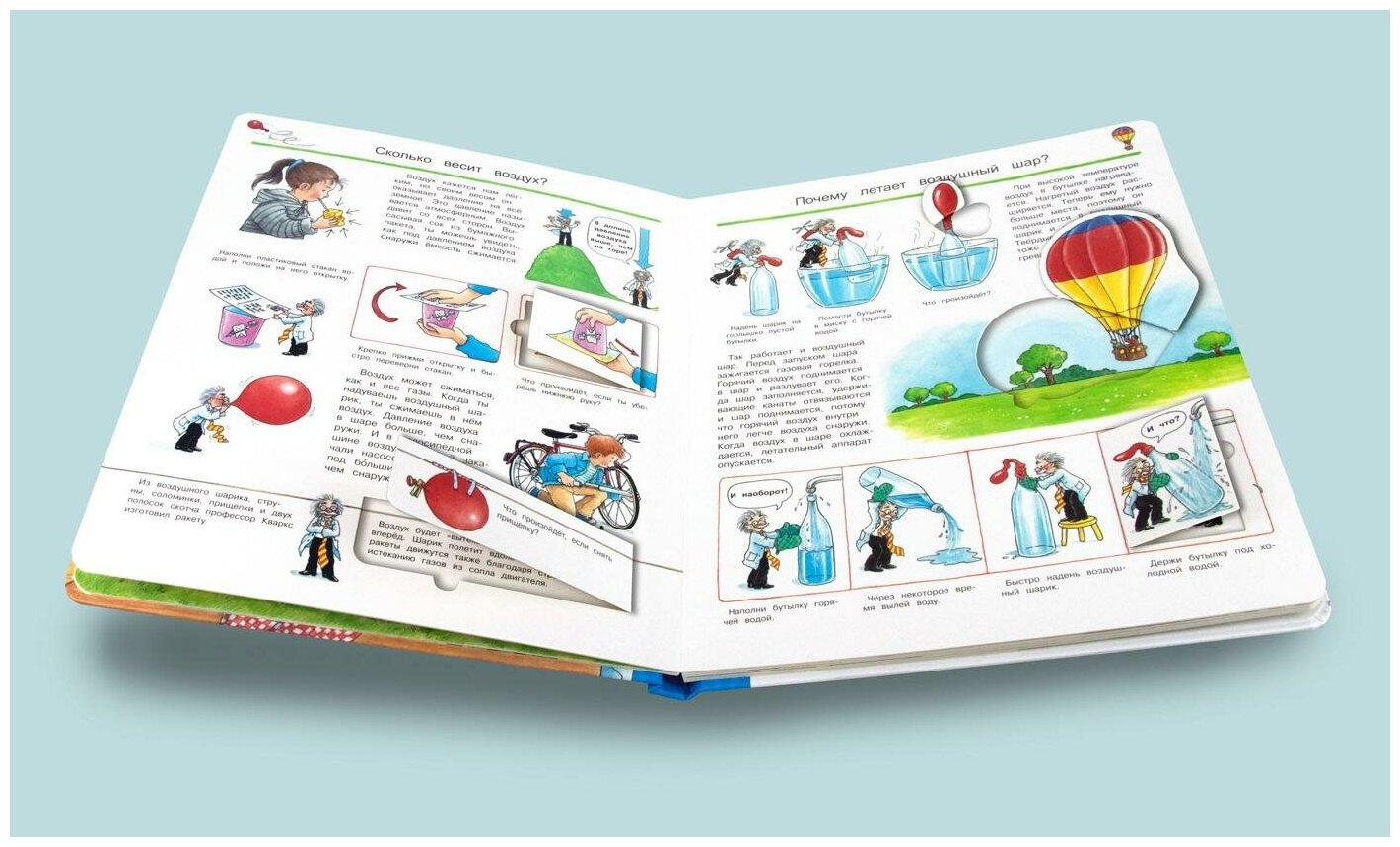 Каждый книжный разворот энциклопедии насыщен массой интереснейшей информации, красочно и занимательно, в игровой форме, рассказывающей о работе учёных и инженеров, исследования и испытания которых позволяют делать важные открытия и создавать новые направления в науке. Проведя эксперименты, описанные в энциклопедии, можно узнать, как в разных условиях ведут себя воздух, вода и другие вещества и почему это происходит.