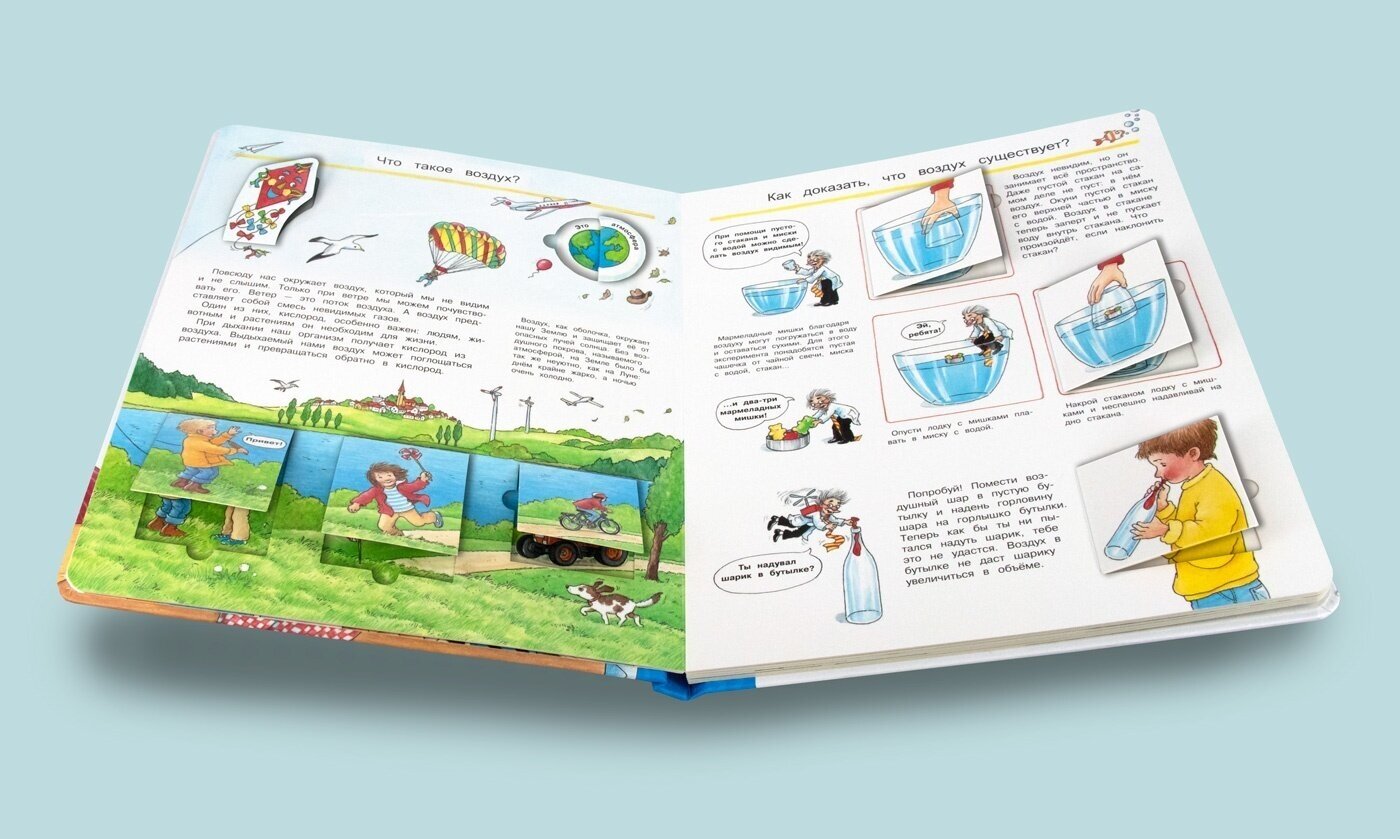 Тщательно прорисованные картинки можно рассматривать часами, замечая и открывая для себя новые удивительные факты, а многочисленные окошки и клапаны с различной дополнительной информацией не только дадут необходимые пояснения и исчерпывающие ответы на вопросы ребёнка, но и превратят чтение в увлекательную игру, разовьют внимание и любознательность.