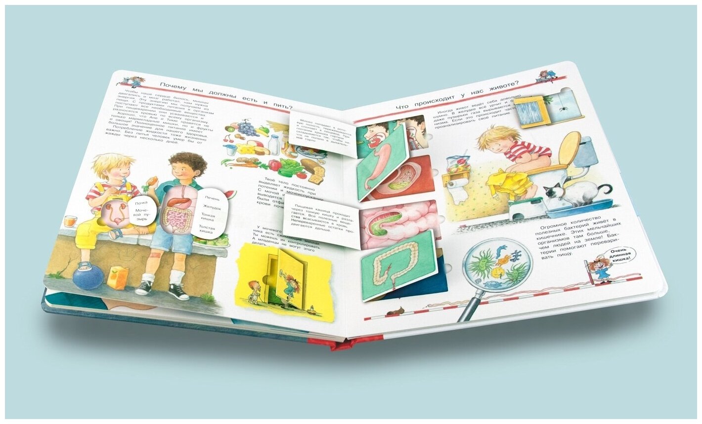 Иллюстрированная энциклопедия «Что? Почему? Зачем? Изучаем наше тело», выпущенная в серии «Для почемучек» издательства «Омега», подарит Вашему малышу уникальную возможность в игровой и занимательной форме посмотреть на себя изнутри и получить представление о том, как устроено его тело и как оно функционирует. Издание можно использовать в качестве оригинального учебного пособия для детей младшего школьного возраста, которое непременно заинтересует ребенка и покорит сердце взрослого, поможет превратить процесс получения новых знаний в очень интересное и увлекательное занятие. Яркая и привлекательная книга увеличенного формата напечатана на высококачественном ламинированном картоне повышенной прочности с закругленными краями страниц. Каждый книжный разворот энциклопедии насыщен массой интереснейшей информации, красочно и занимательно описывающей устройство человеческого тела. Здесь можно найти простые и понятные ответы на вопросы: откуда мы появляемся; как мы растём и чем отличаемся; что такое органы чувств и за что они отвечают; из чего состоит наш скелет и как мы двигаемся; зачем нам нужна кровь и как мы дышим; почему мы должны есть и пить и отчего мы болеем. Тщательно прорисованные картинки можно рассматривать часами, замечая и открывая для себя новые удивительные факты, а многочисленные окошки и клапаны с различной дополнительной информацией не только дадут необходимые пояснения и исчерпывающие ответы на вопросы ребёнка, но и превратят чтение в увлекательную игру, разовьют внимание и любознательность. Книга станет замечательным подарком для юных «почемучек» и ценным пополнением домашней библиотеки.