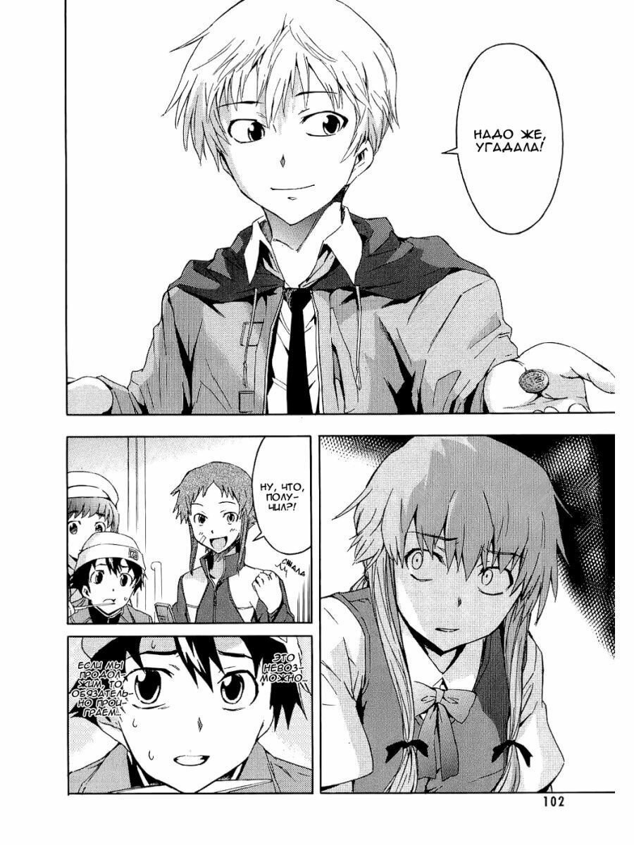 Сюжет. Псих на психе. Было приятно увидеть как Юкитэру Амано заводит новых друзей, пытается жить нормальной жизнью, однако сюжет как зебра. Вот вроде бы все хорошо и все нормально Однако, резко, прям очень резко начинается полный ... переход. Резко появляются злодеи, тот кто был другом уже не друг. Тот что был врагом уже не враг и ты сидишь такой и залипаешь. Понимаешь, что от всех абсолютно все можно ожидать и сам не понимаешь как бы действовал при данных ситуациях. Немного удивляет Юно Гасай. Она то холоднокровная убийца, то маленькая девочка, которая прям тает если ей сделает что-то приятное главный герой. Ладно, читаем дальше.