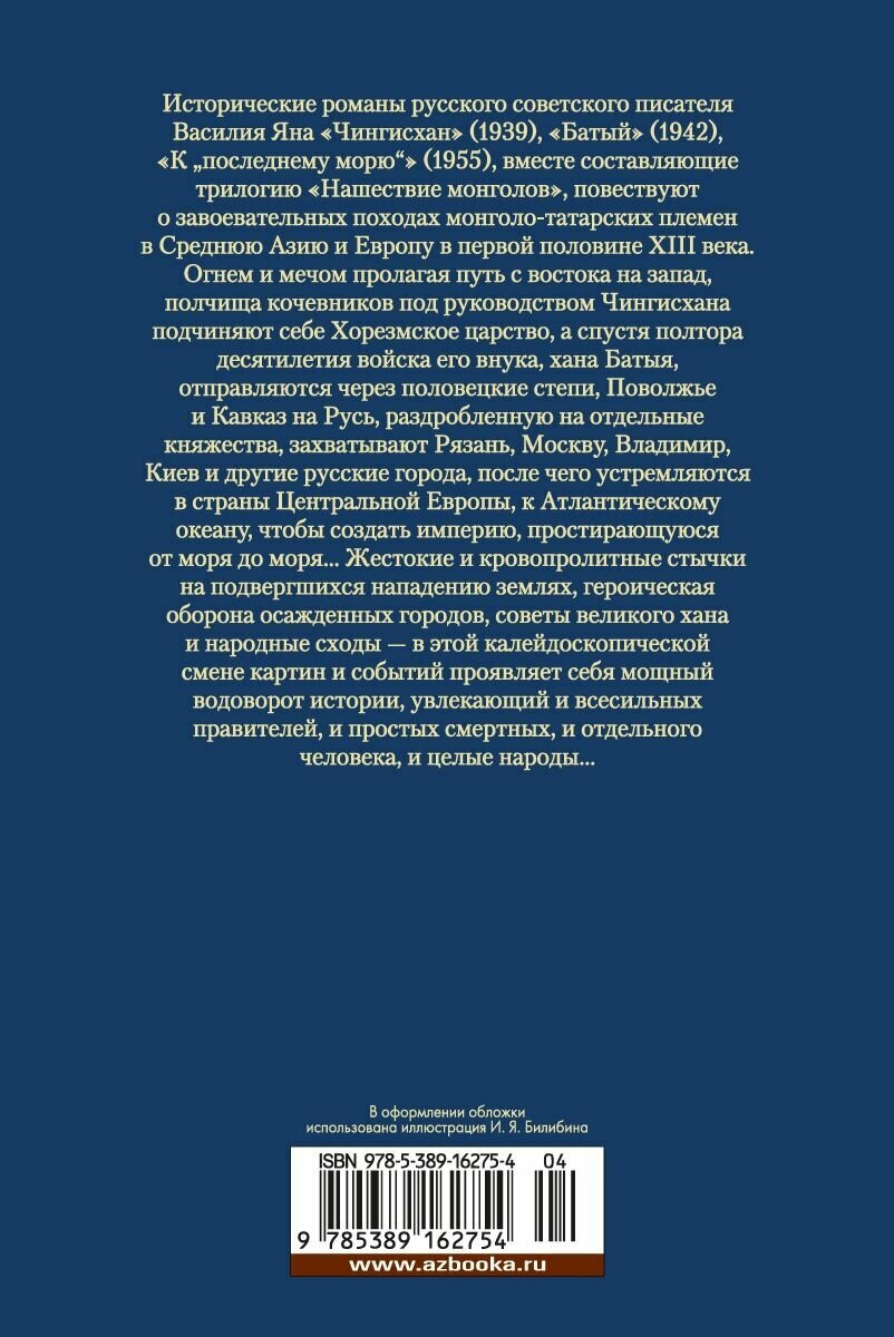 Чингисхан. Батый. К «последнему морю» (Ян Василий Григорьевич); Азбука, 2022