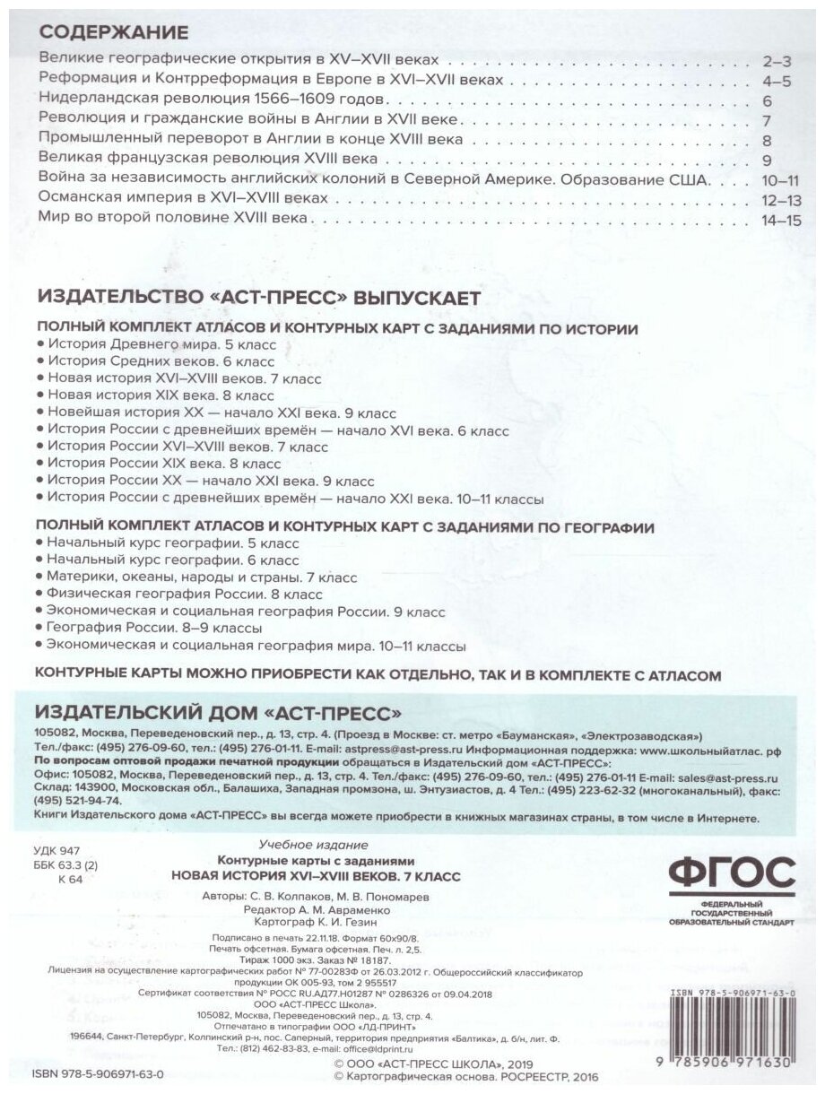 Новая история 16-18 веков.7 класс. К/К с заданиями (Сергей Владимирович Колпаков); АСТ-Пресс, 2019