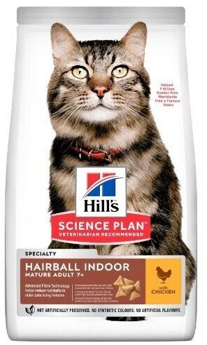 Hill’s Science Plan Hairbal Control помогает предотвратить образование волосяных комочков: Рецептура с антиоксидантами с клинически подтвержденным эффектом и оптимальным уровнем фосфора подходит для ежедневного кормления Технология применения натуральной клетчатки помогает снижать образование волосяных комочков. Незаменимые нутриентыснижают выпадение шерсти Антиоксиданты и витамины Е и С сохраняют функции почек Гарантируемое качесво корма и превосходного вкуса Для достижения максимального эффекта, рацион Hill’s Science Plan Cat Mature Adult 7+ Hairball Control (Контроль над безоарами) рекомендуется использовать ежедневно в качестве монодиеты (т.е. не смешивать с другими рационами). Пробуете этот рацион впервые? Постепенно в течение 7 дней переводите животное на новый рацион, увеличивая его содержание по отношению к прежнему. Обеспечьте питомцу свободный доступ к свежей воде. Суточная норма указана на упаковке, но она требует дальнейшего уточнения для поддержания оптимального веса кошки